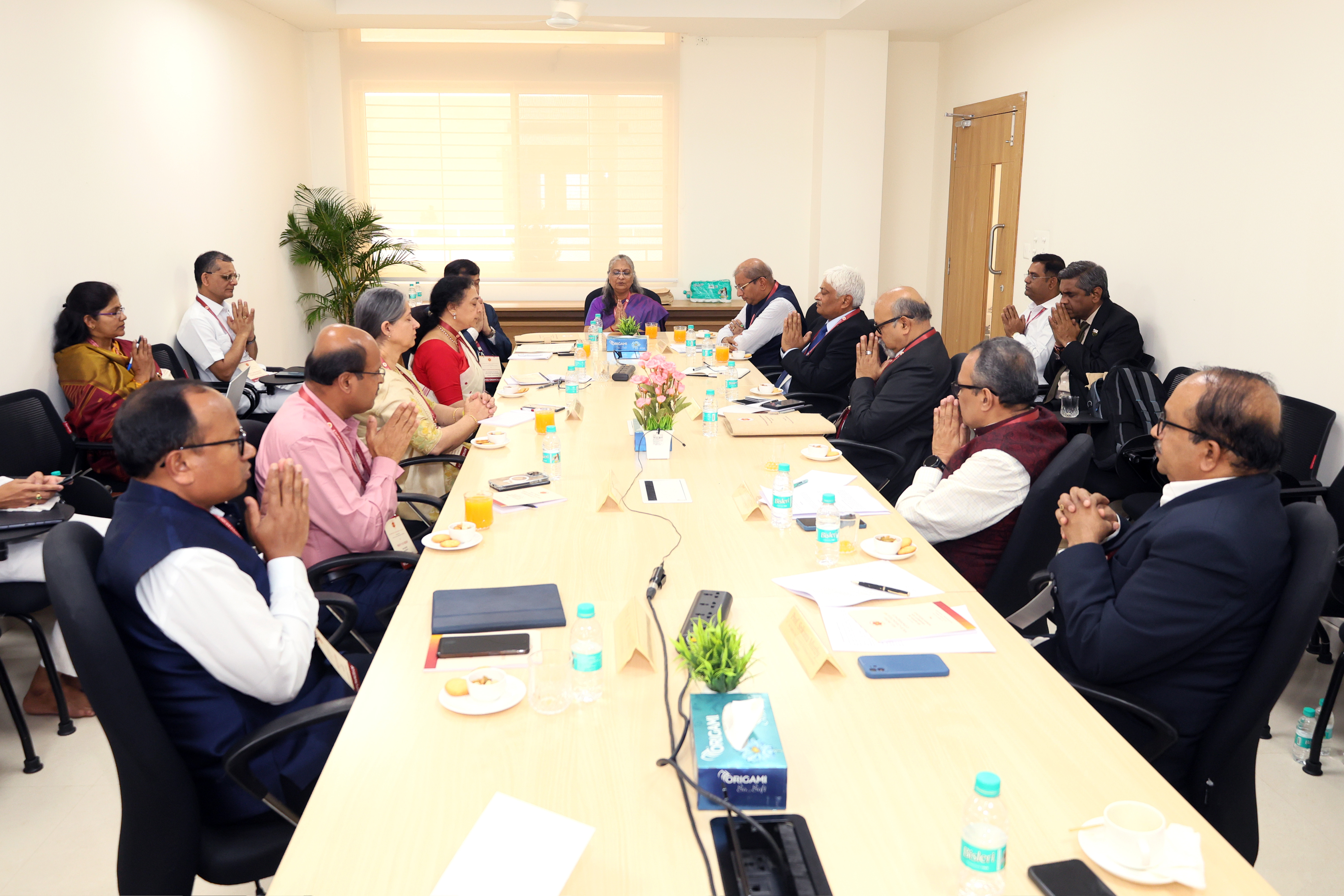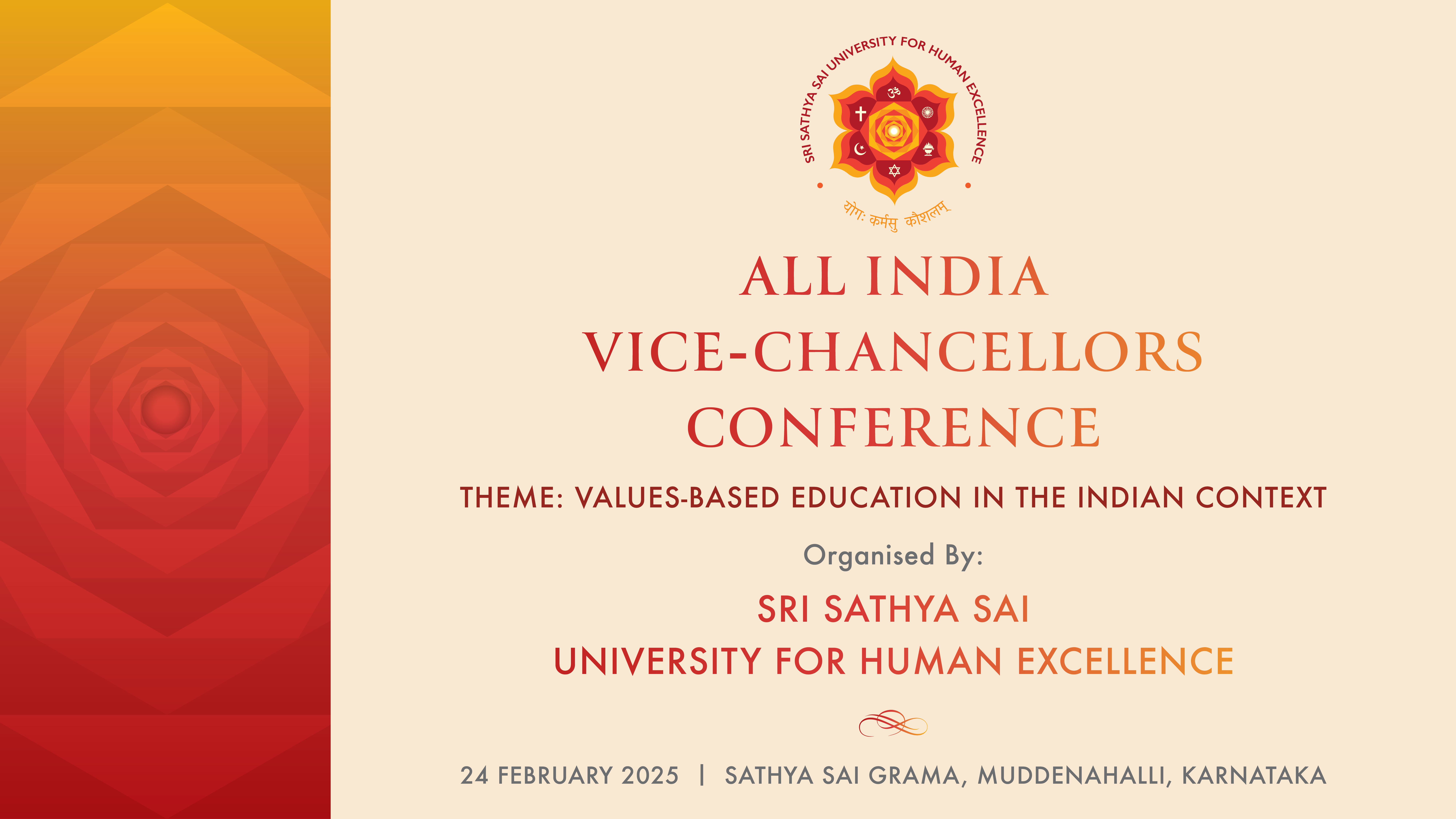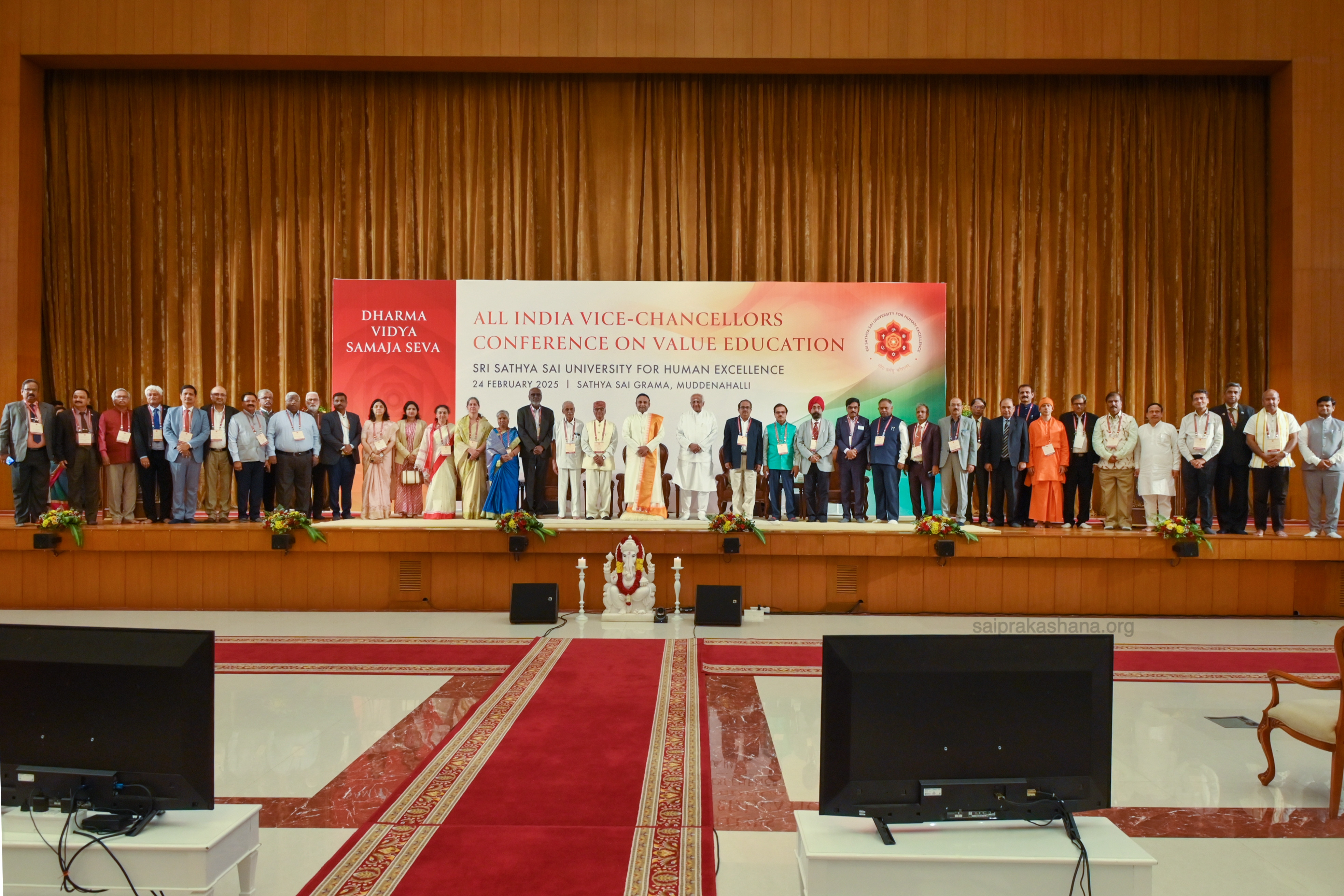The All India Vice-Chancellors Conference on Values-Based Education concluded at Sri Sathya Sai University for Human Excellence (SSSUHE) on Monday, 24 February 2025. The conference brought together 44 Vice-Chancellors from 50 Universities across 18 states in India - Andhra Pradesh, Arunachal Pradesh, Chattisgarh, Gujarat, Haryana, Jammu and Kashmir, Jharkhand, Karnataka, Kerala, Madhya Pradesh, Maharashtra, Meghalaya, Punjab, Rajasthan, Sikkim, Tamil Nadu, Telangana and West Bengal.