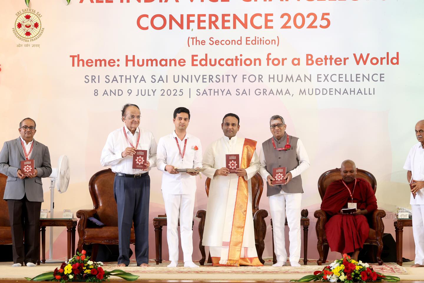It is in this context that the University organises several conferences and events at the national and international levels to galvanize collective momentum to achieve common goals. With an objective of improving the quality of higher education by infusing and strengthening the ‘Values-Based Education’ component in them, the University organised an All India Vice-Chancellors Conference in February 2025 on the theme ‘Values-Based Education in the Indian Context’ under the guidance of its Founder Chancellor, Sri Madhusudan Sai. The conference attracted university leaders from 18 States, including 44 Vice-Chancellors from 50 Universities. Buoyed with the positive feedback and deep appreciation for this Conference from the participants, the University continued its efforts towards revolutionizing the higher education system of the country by launching the second edition of All India Vice-Chancellors Conference that was held on 08 and 09 July 2025, with the theme ‘Humane Education for a Better World.’