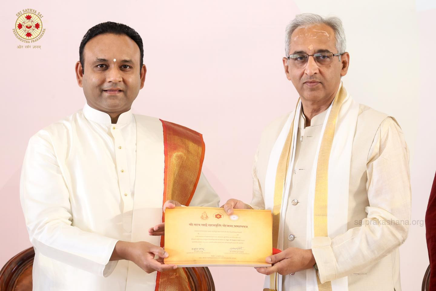 ‘Sri Sathya Sai Bharath Samskriti Samman’, a ceremony to honour the vedic tradition of India was held as part of the Inaugural Session of the Conference. The Samman chose the best vedic student, the ideal vedic teacher, and the best vedic pāthaśālā or gurukulam across the country, and awarded them with a cash prize, citation and medal, in an effort to encourage vedic learning and foster vedic culture.