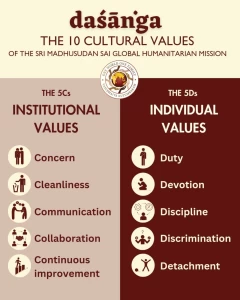 Sri Madhusudan Sai's daśānga, comprising the 5 C's for institutional culture and the 5 D's for individual values, provides a comprehensive framework of ten guiding principles.