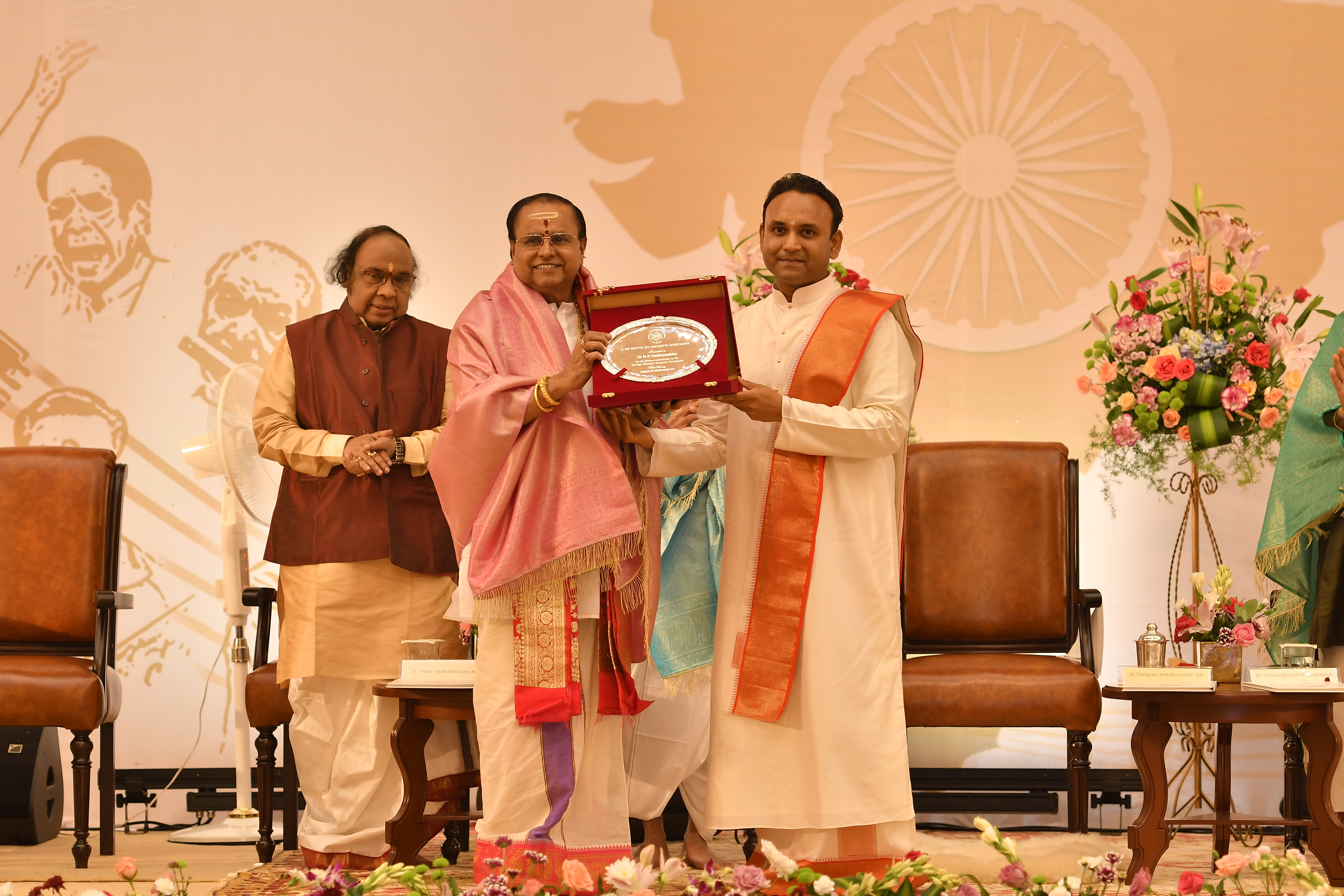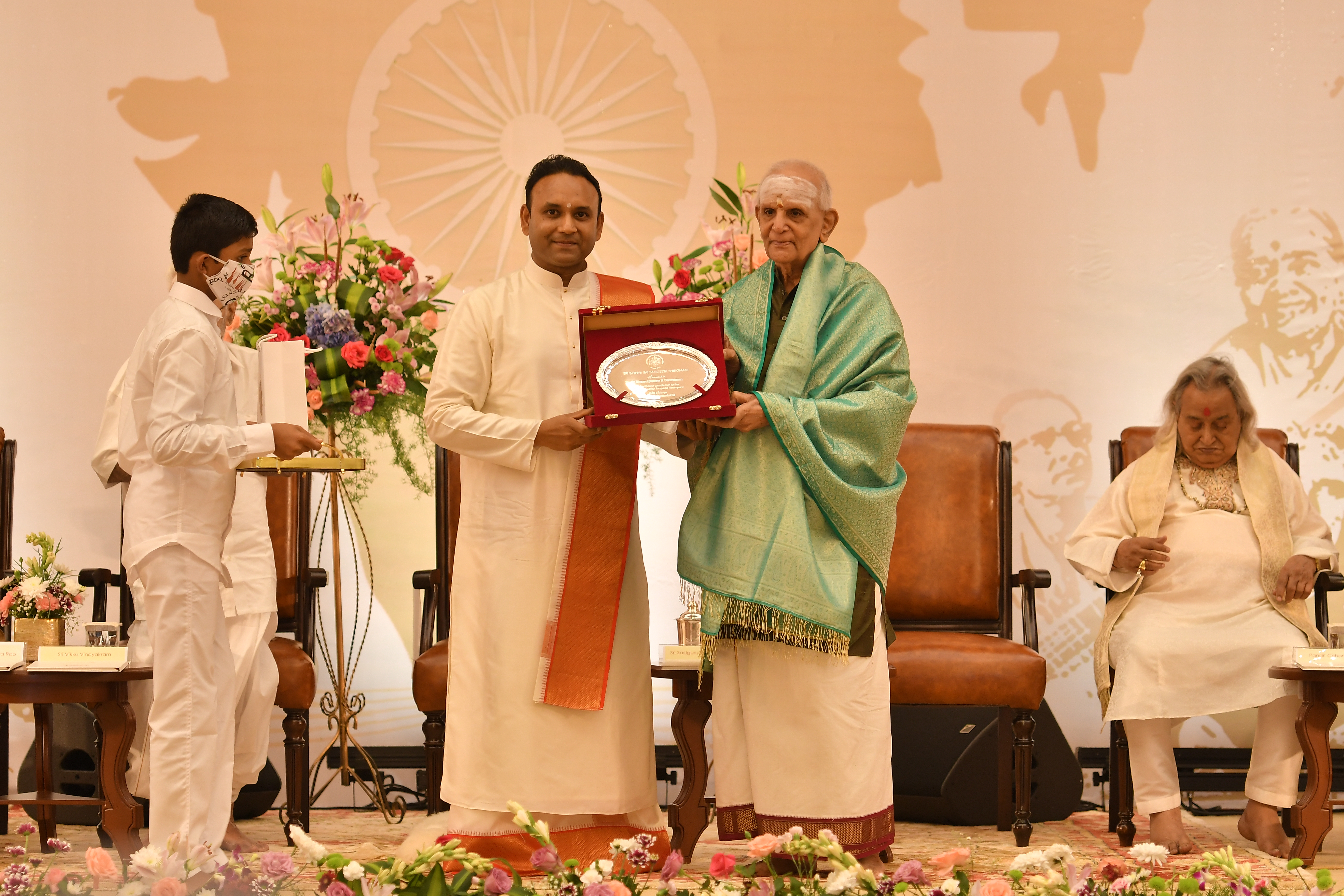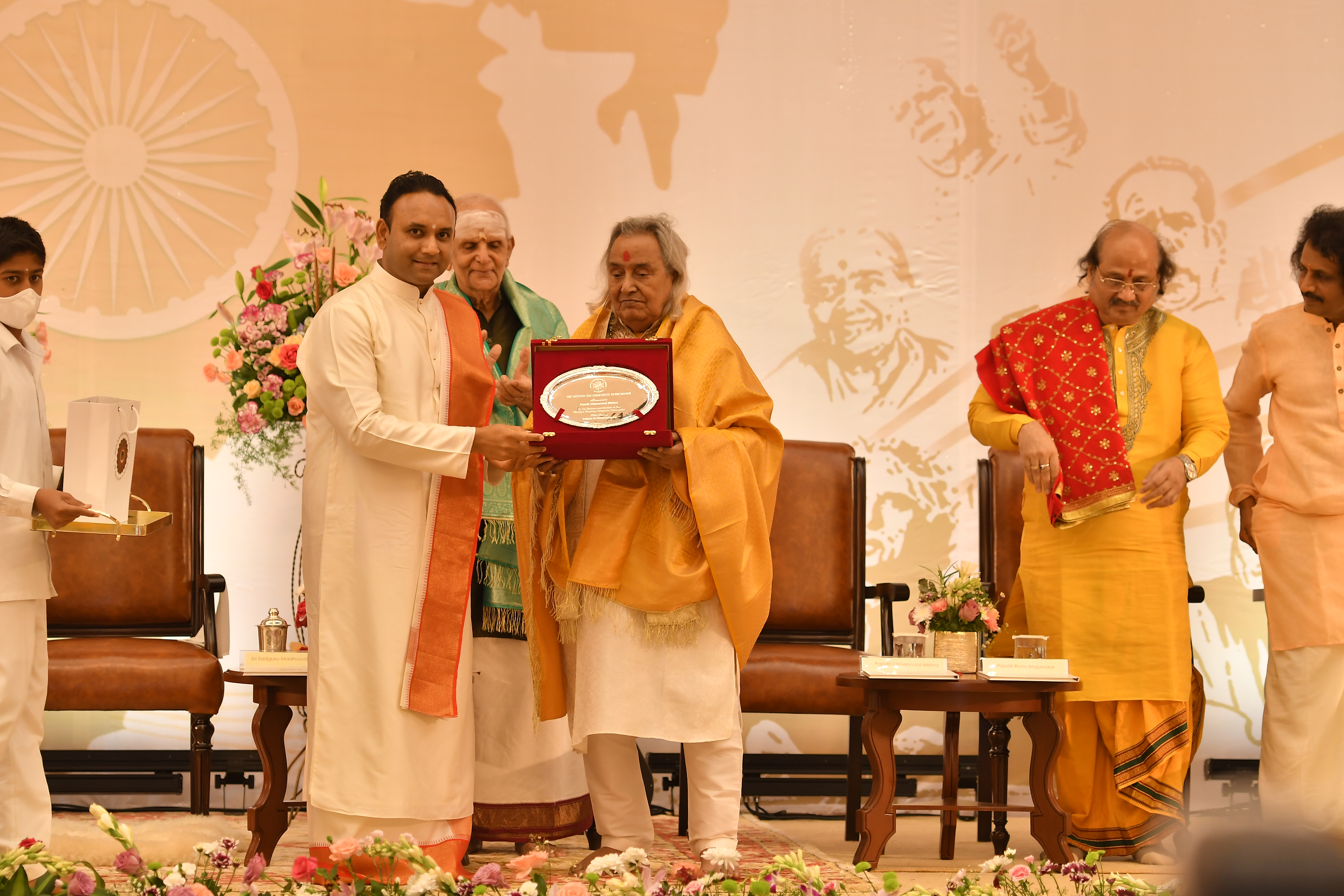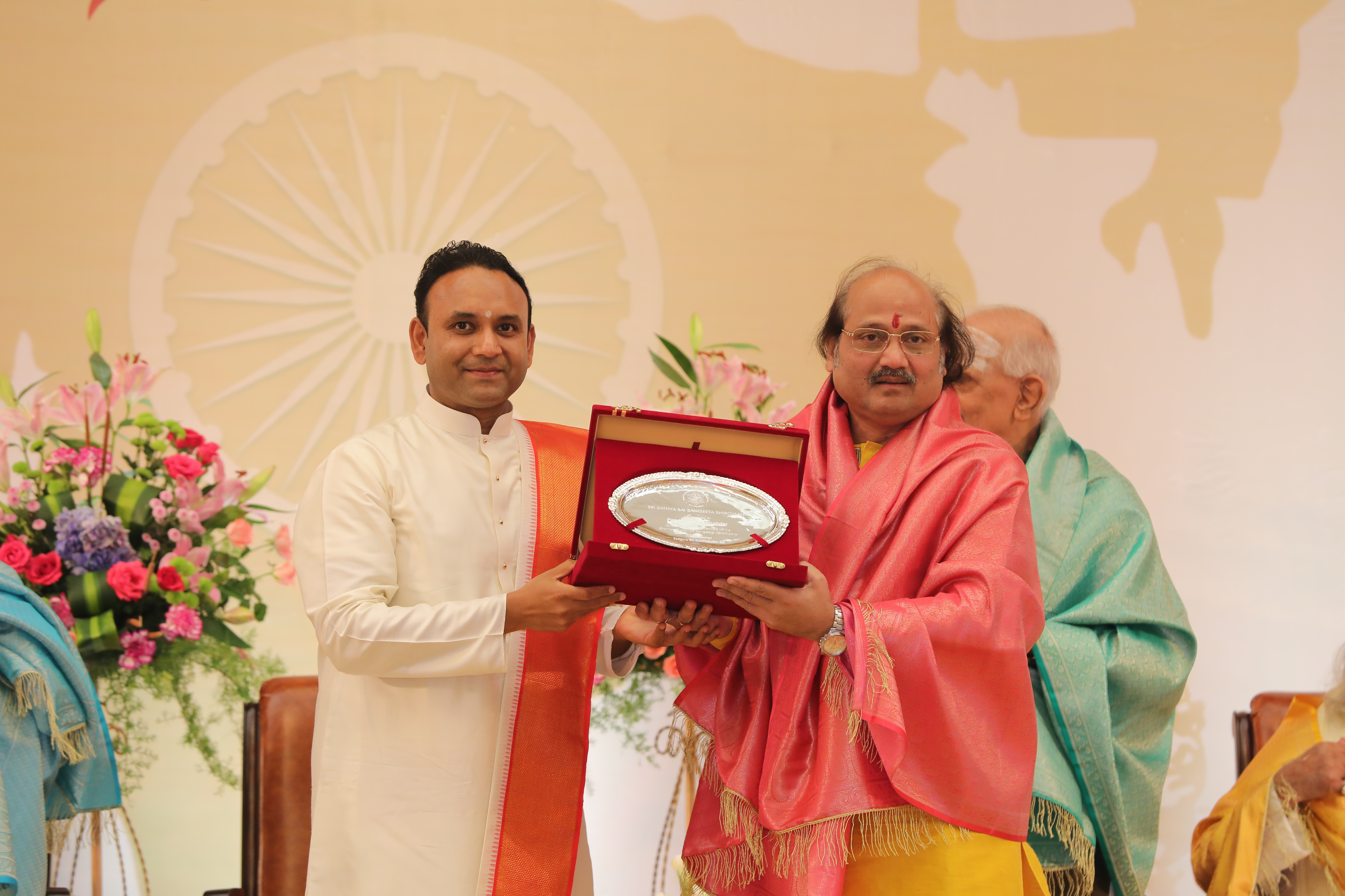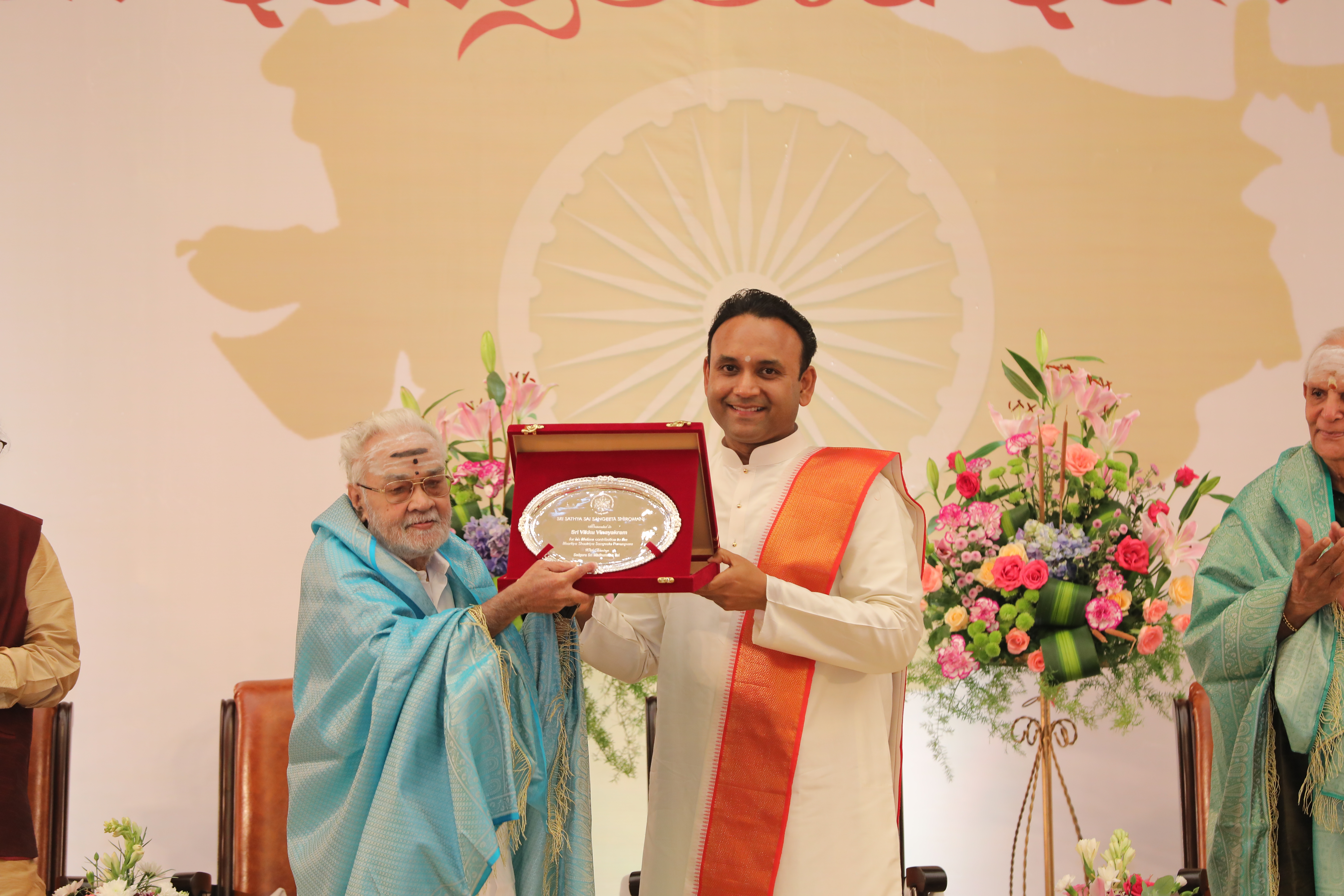 The valedictory function of the sammelan witnessed several well-known stalwarts of Indian classical music who were felicitated and honoured with the Sri Sathya Sai Sangeeta Shiromani Award. The legends who were honoured were – MrudangamVidwan and Padma Vibhushan Awardee, Dr Umayalpuram K Sivaraman; Hindustani Vocalist and Padma Vibhushan Awardee, Pandit Chhannulal Mishra; Ghatam Vidwan and Padma Bhushan Awardee, Sri VikkuVinayakram; Carnatic Vocalist, GanakalabhushanaVidwan Dr R K Padmanabha; MrudangamVidwan and Padma Shri Awardee, Dr Yella Venkateshwara Rao and world-renowned flautist Pandit Ronu Majumdar