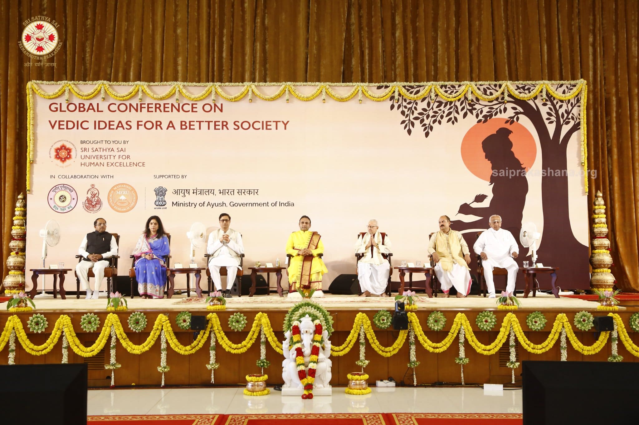 A 'Global Conference on Vedic Ideas for a Better Society’ was organised by the Sri Sathya Sai University for Human Excellence (SSSUHE) in conjunction with Vedic Vigyan Kendra of Banaras Hindu University, Maharishi European Research University (MERU), Netherlands, with the support of the Ministry of AYUSH.