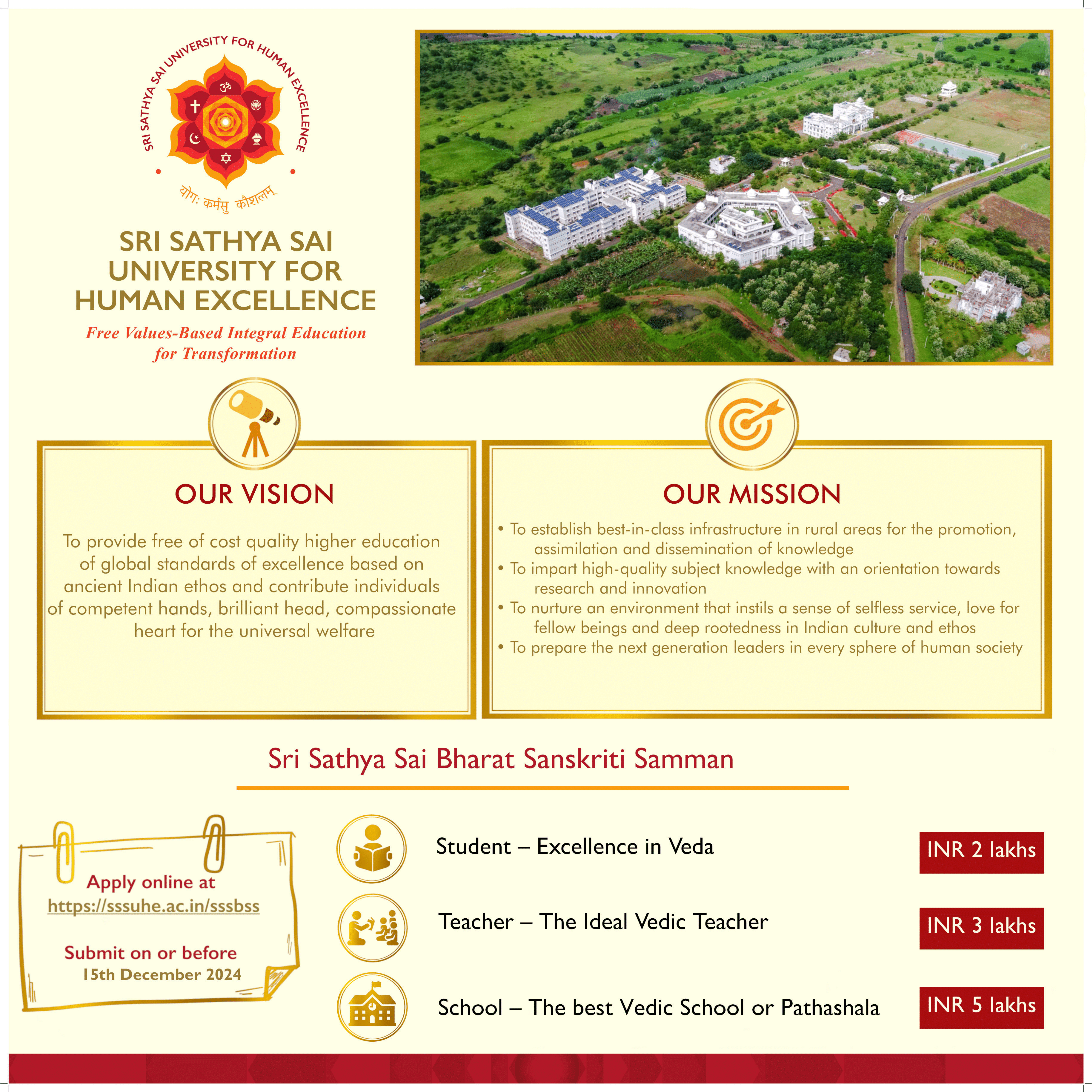 Invitation for Nominations: Sri Sathya Sai Bharat Sanskriti Samman 2024-25