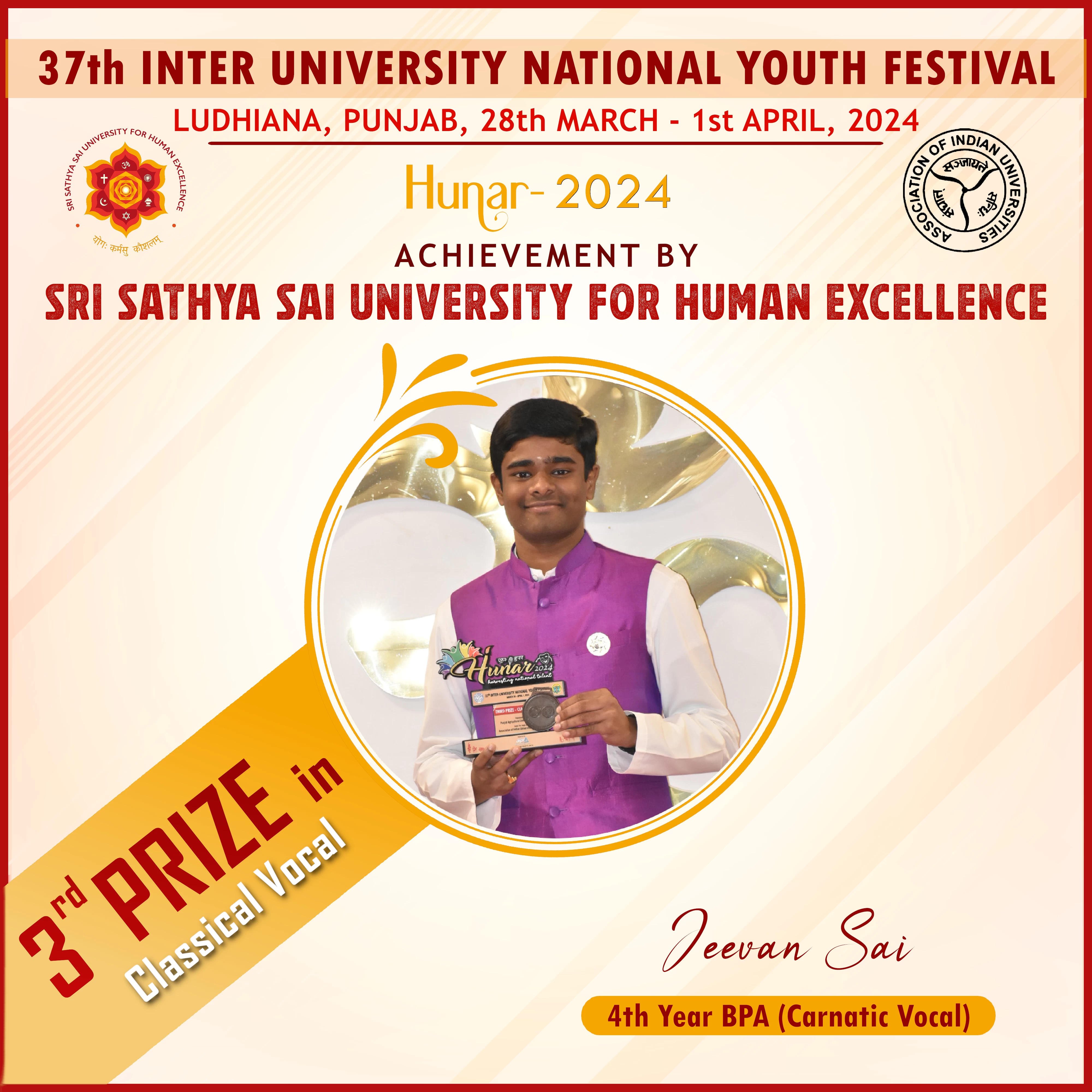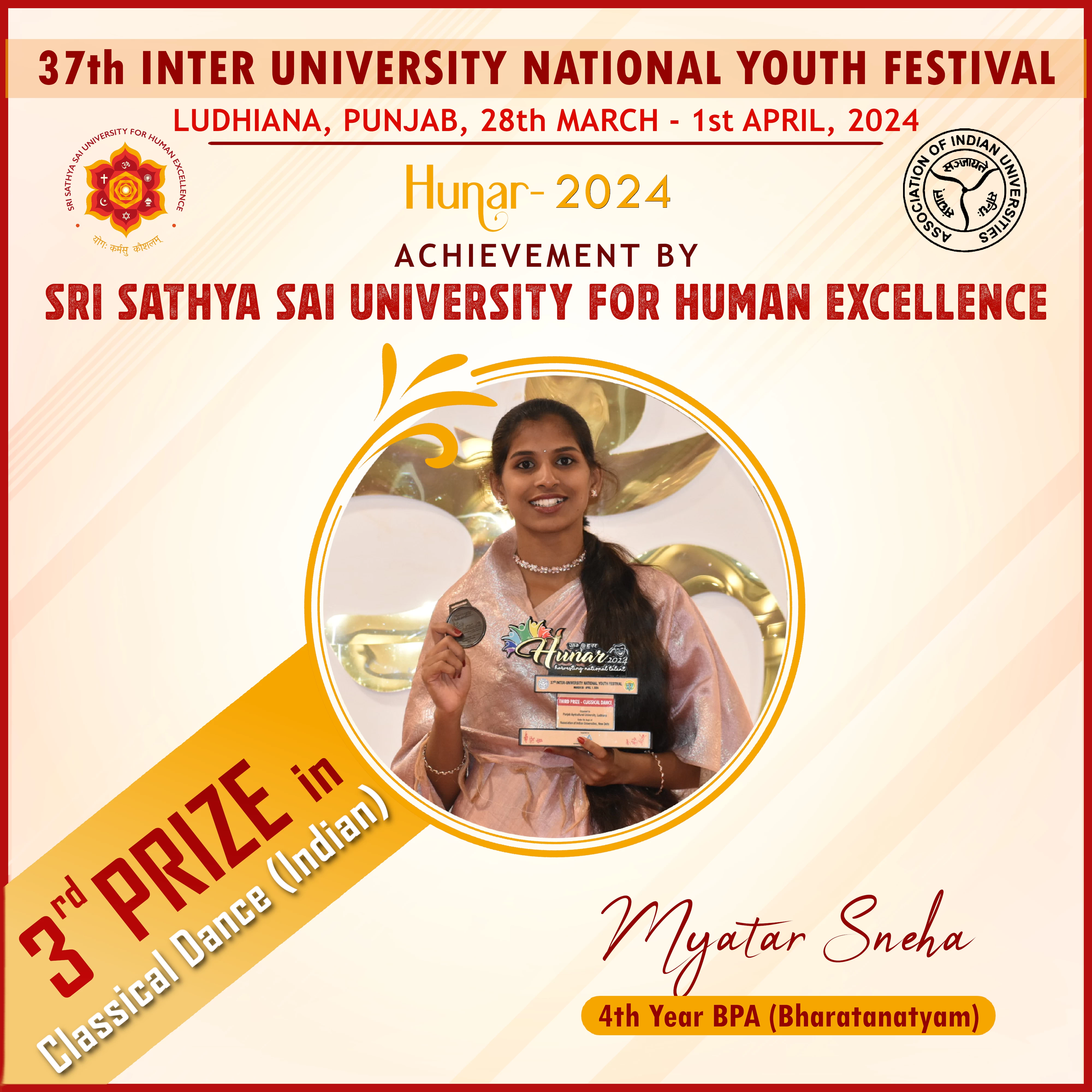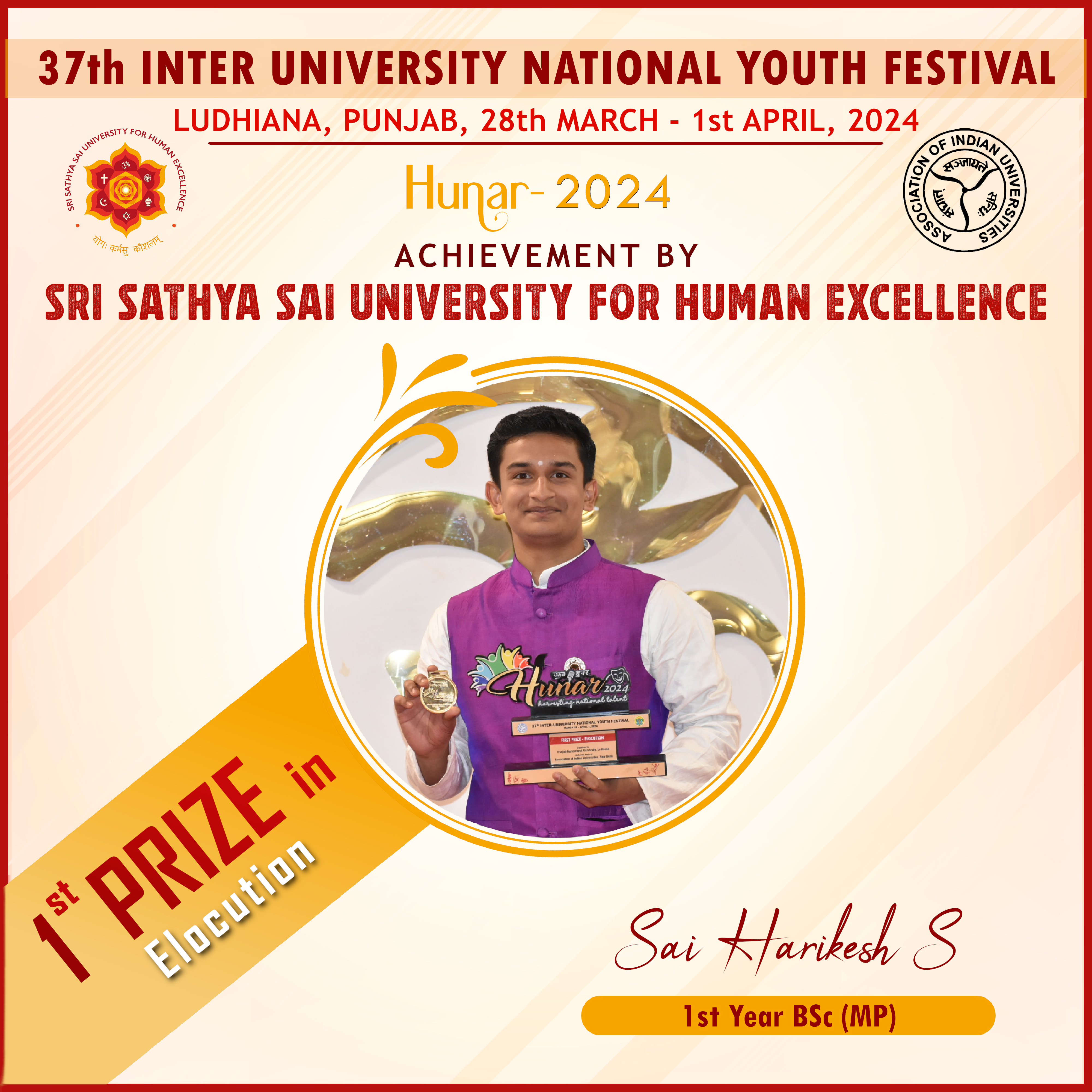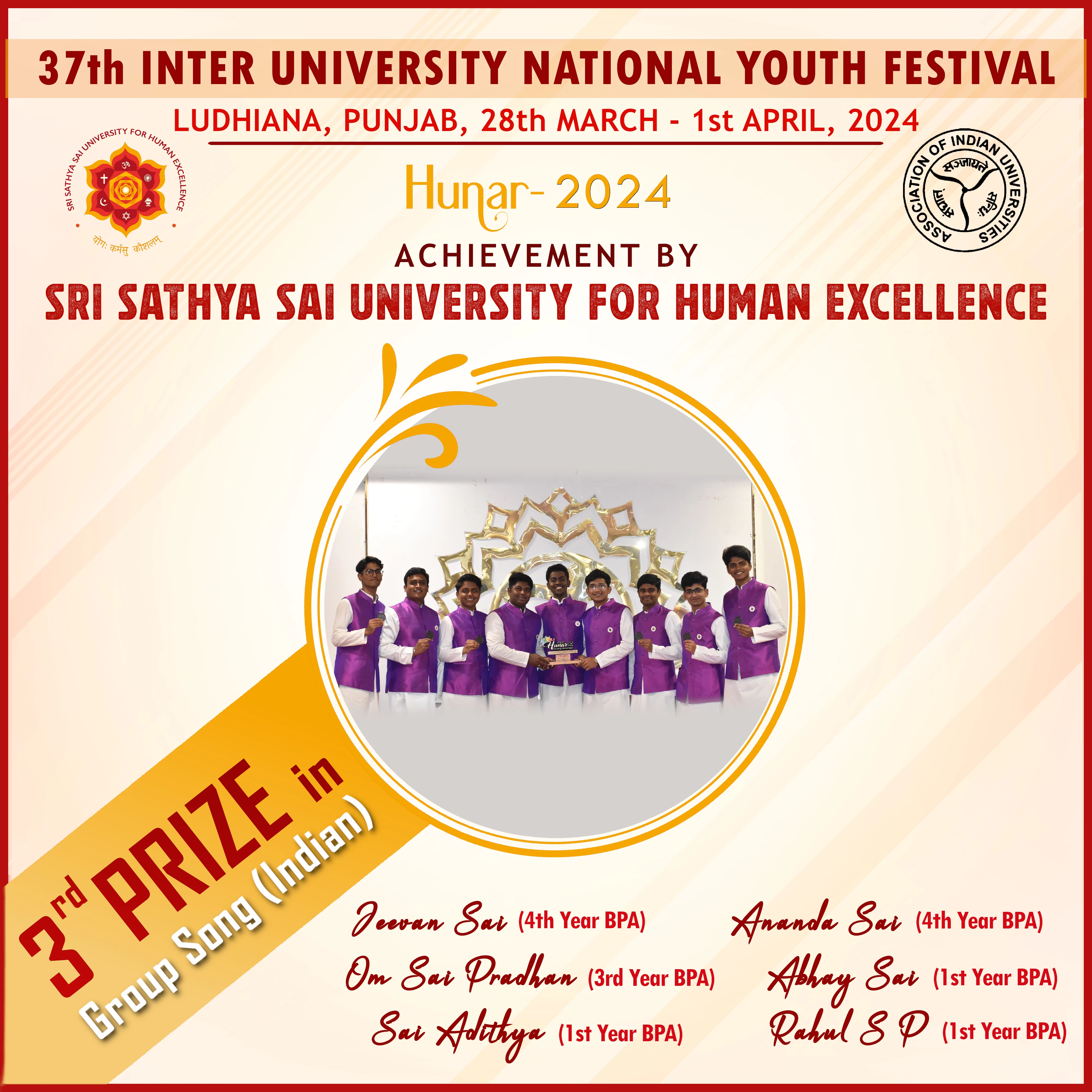 Sri Sathya Sai University for Human Excellence proudly represented at the National level, with following participants competing in five categories: