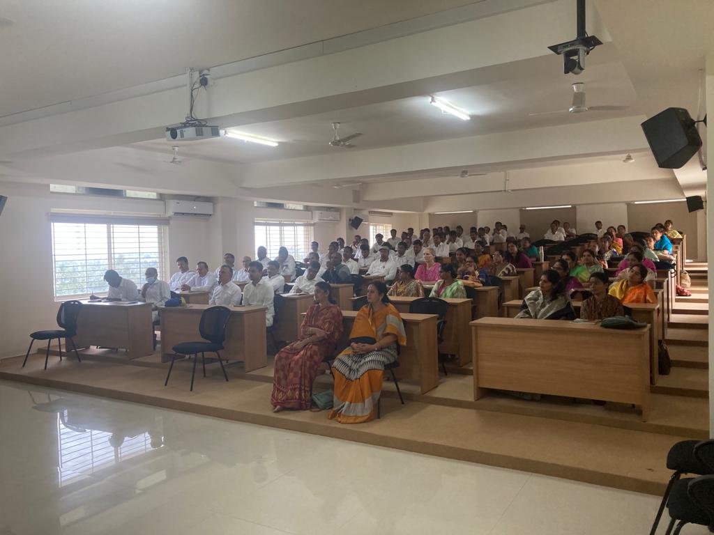 Prof Srikanta Murthy, the Vice Chancellor, spoke about the standards of the university that are being set due to the visits of the Prime Minister and the President. He also talked about the unique culture that the university follows and the importance of involvement in the upcoming Para Vidya programme. He also guided the staff on assigned duties, initiation, presenting papers, multi-disciplinary research, and human excellence.