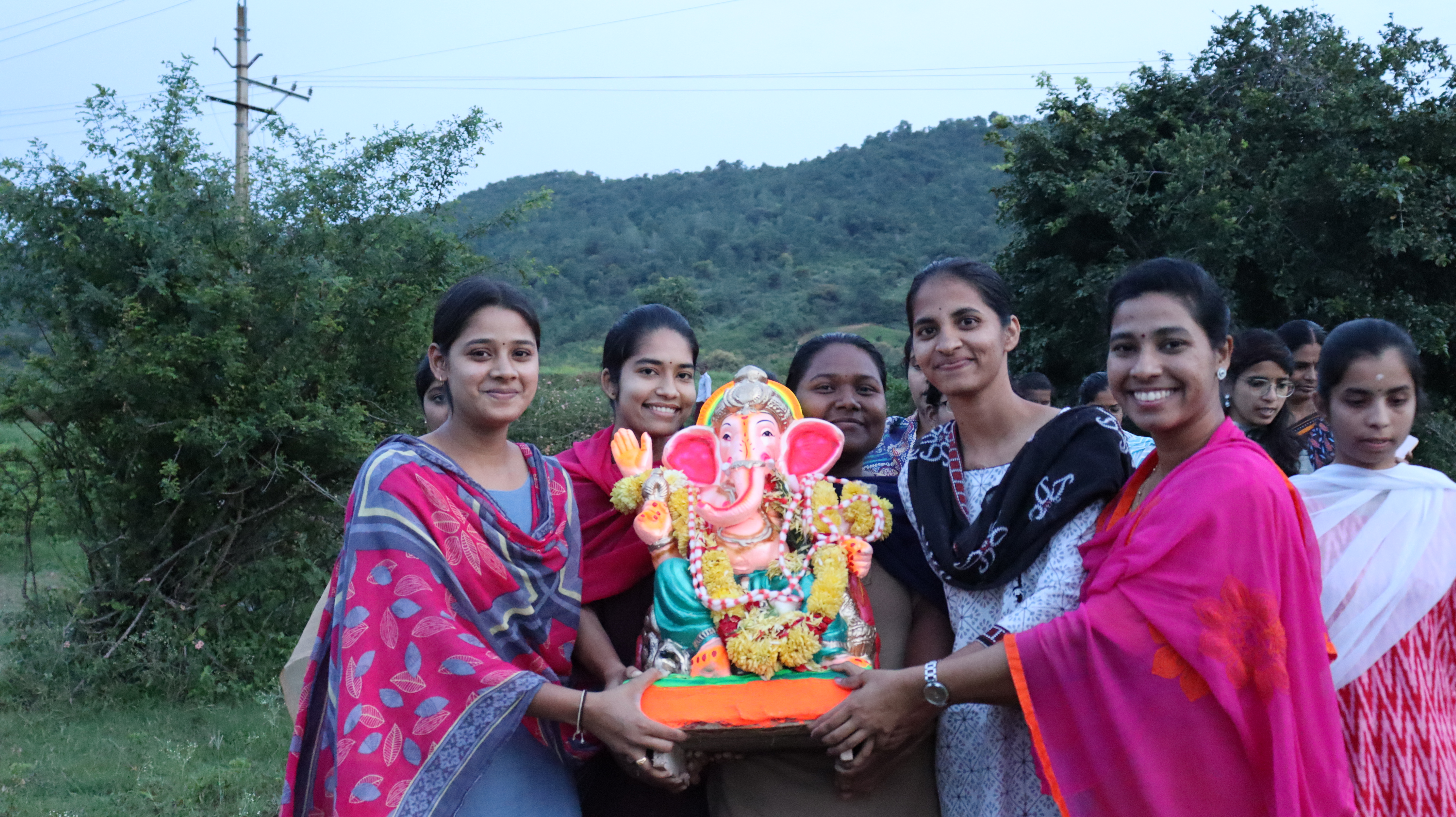 The three-day Ganesh Chaturthi celebrations began on September 18th with the Gowri pooja, which was graced by the presence of Swami, the most benevolent Lord. The pooja was followed by a series of cultural events, including a musical offering by the BPA students, a clay idol-making competition, and a Bhajan Antakshari.