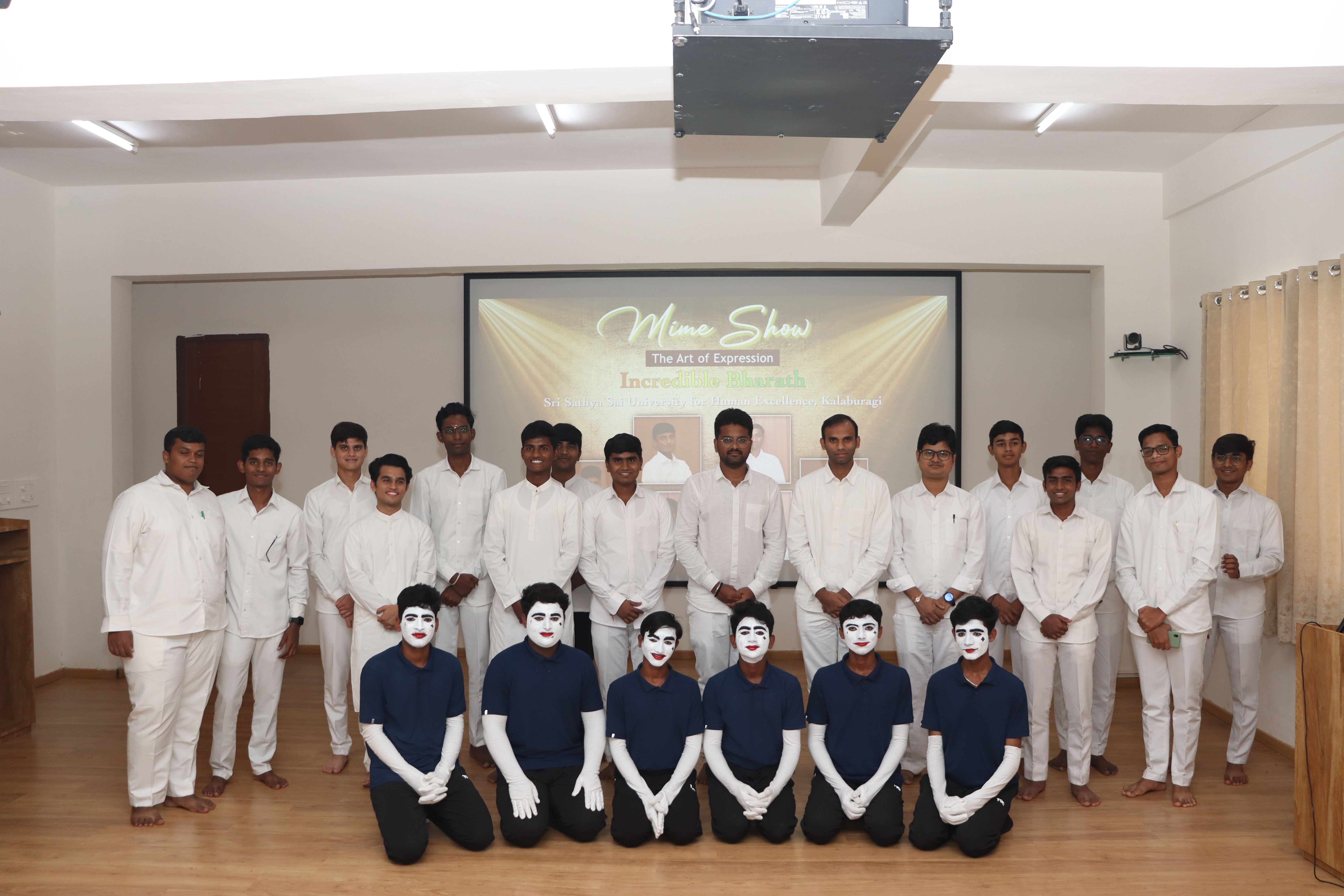 On September 11th, as part of their extracurricular activities, the students of Sri Sathya Sai University for Human Excellence presented a mesmerising and extraordinary performance in the form of pantomime, or simply miming. Their performance centered around the theme of "Incredible Bharat," with a strong emphasis on India's freedom fighters, such as Bhagat Singh and Mahatma Gandhi.
