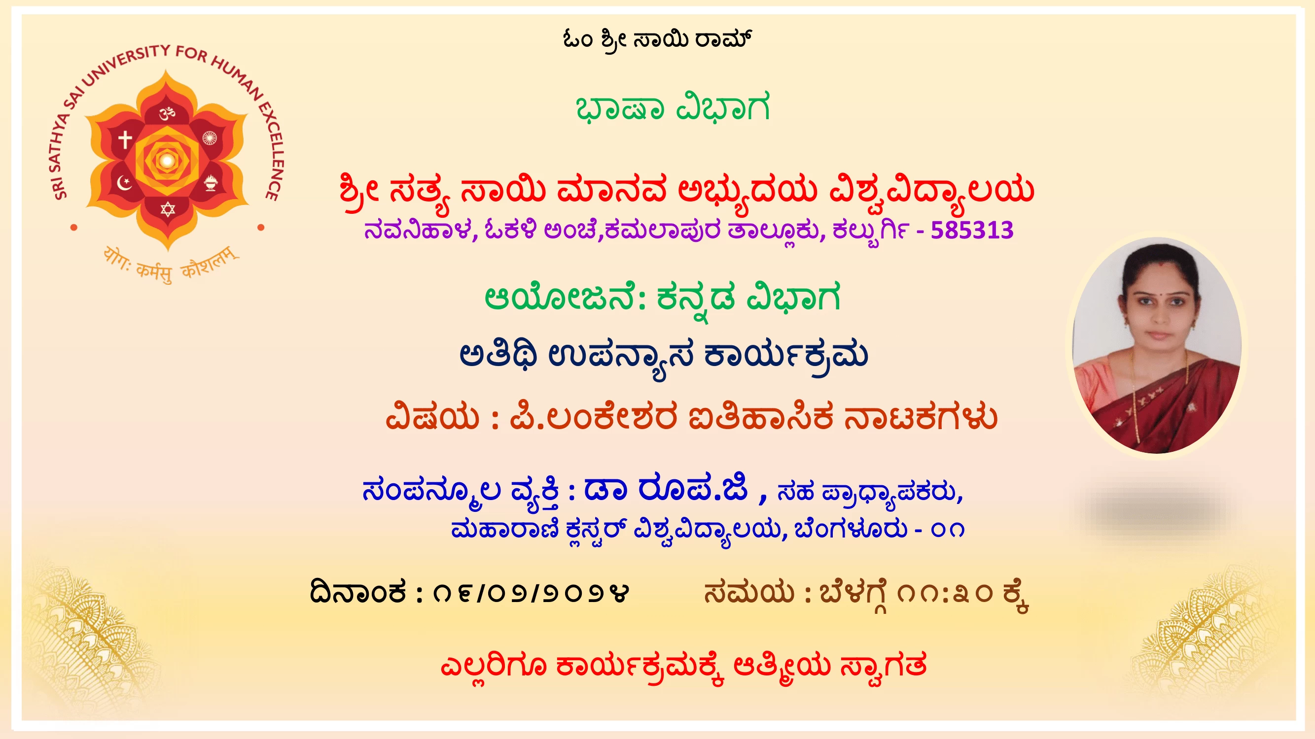 Organisers: Department of Languages, Sri Sathya Sai University for Human Excellence