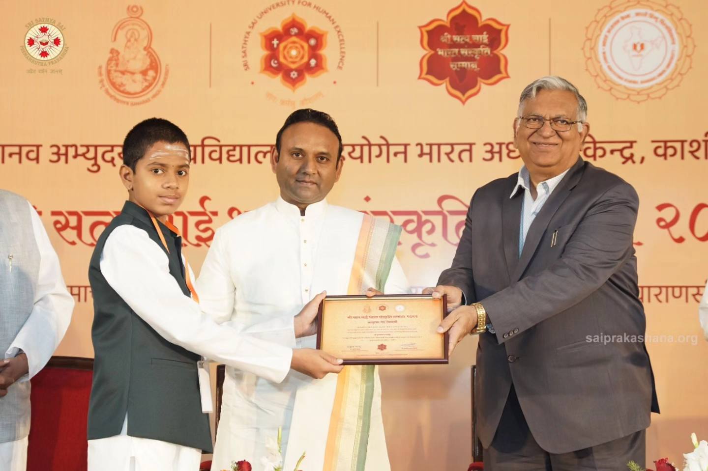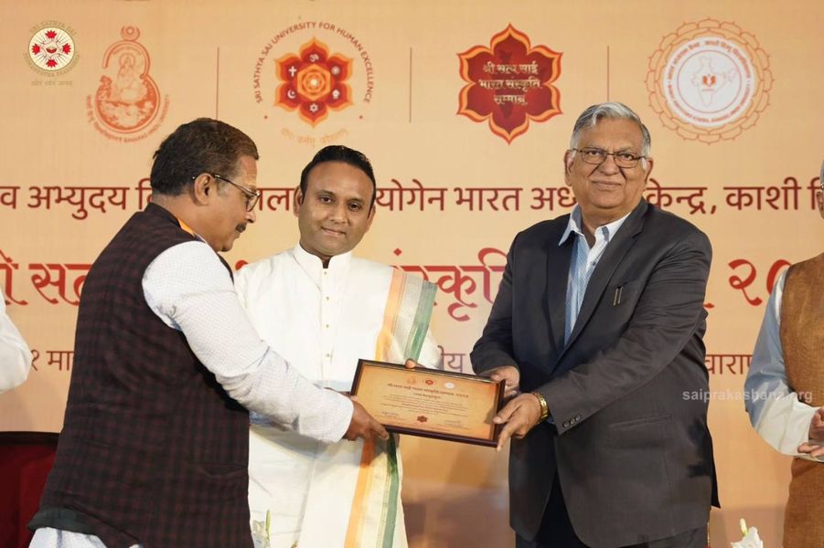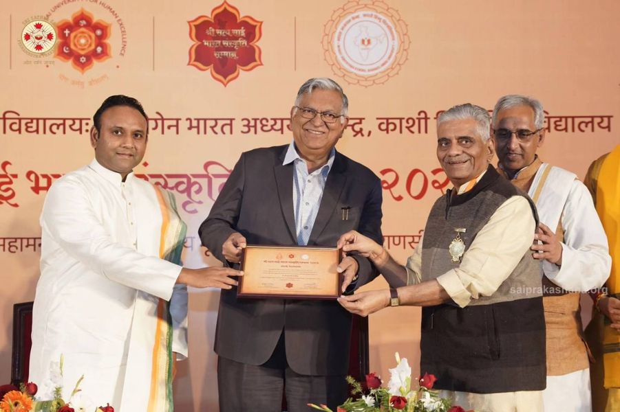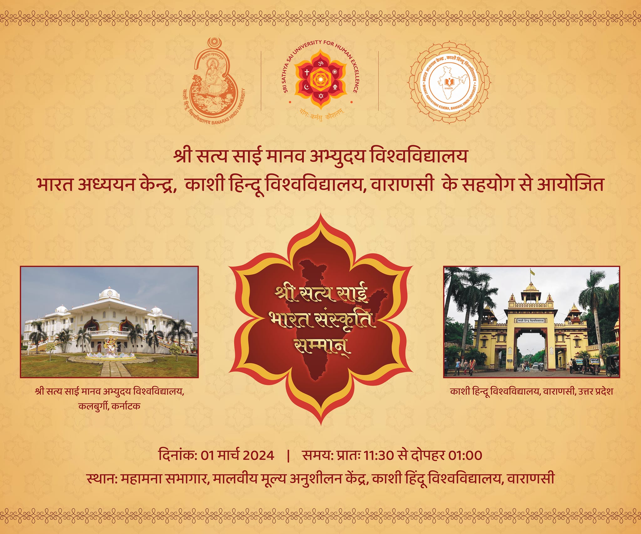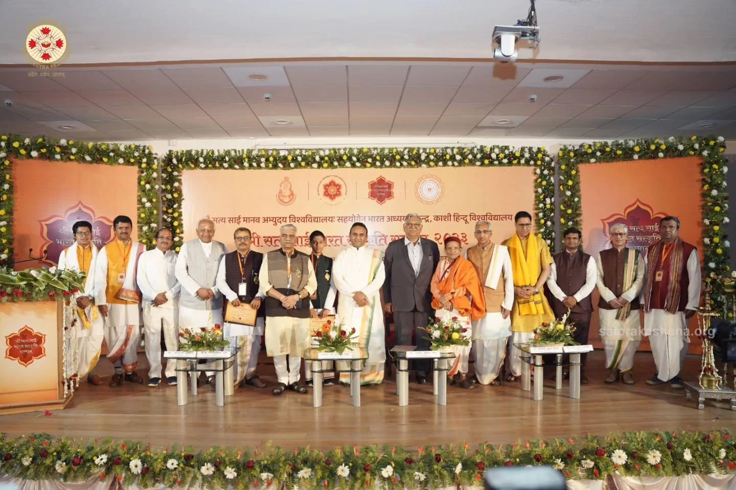 Sri Sathya Sai University for Human Excellence (SSSUHE) joined hands with Bharath Adhyayan Kendra, Banaras Hindu University - Varanasi (BHU) to host the prestigious 'Sri Sathya Sai Bharat Sanskriti Samman 2023'. Sri Madhusudan Sai, founder of SSSUHE, and Prof Sudhir Kumar Jain, Vice Chancellor of BHU, were the chief guests.