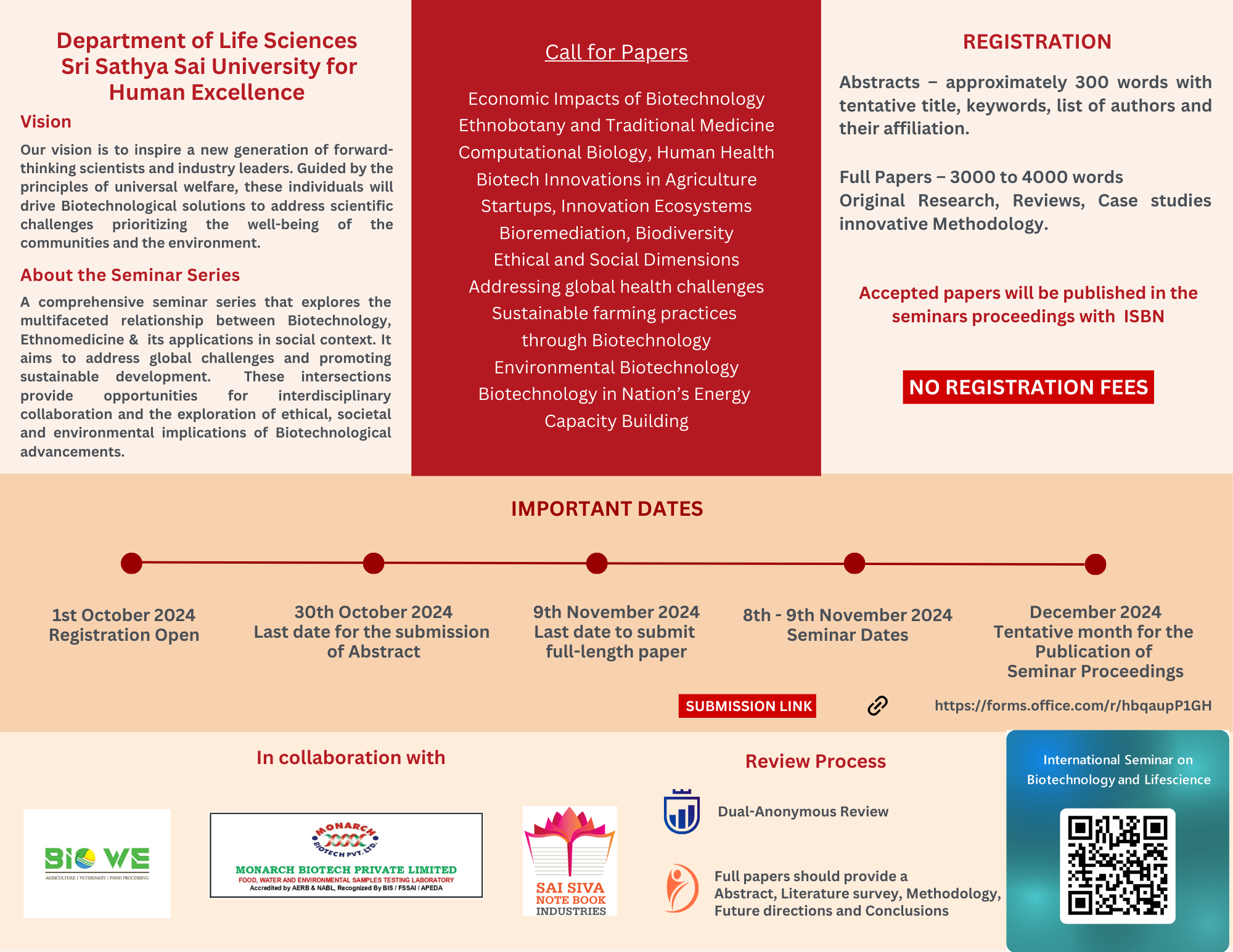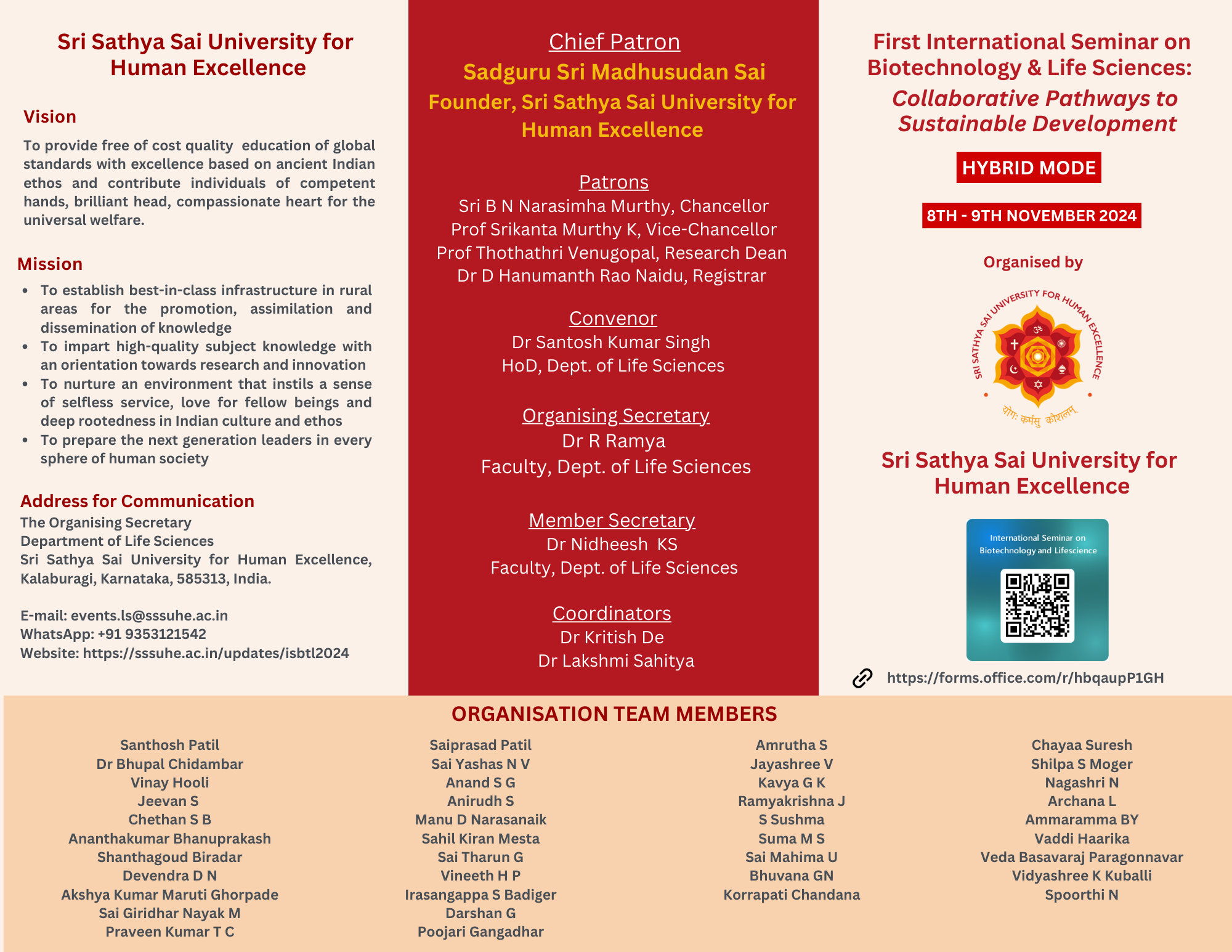 Organised by: Department of Life Sciences, Sri Sathya Sai University for Human Excellence, Karnataka
