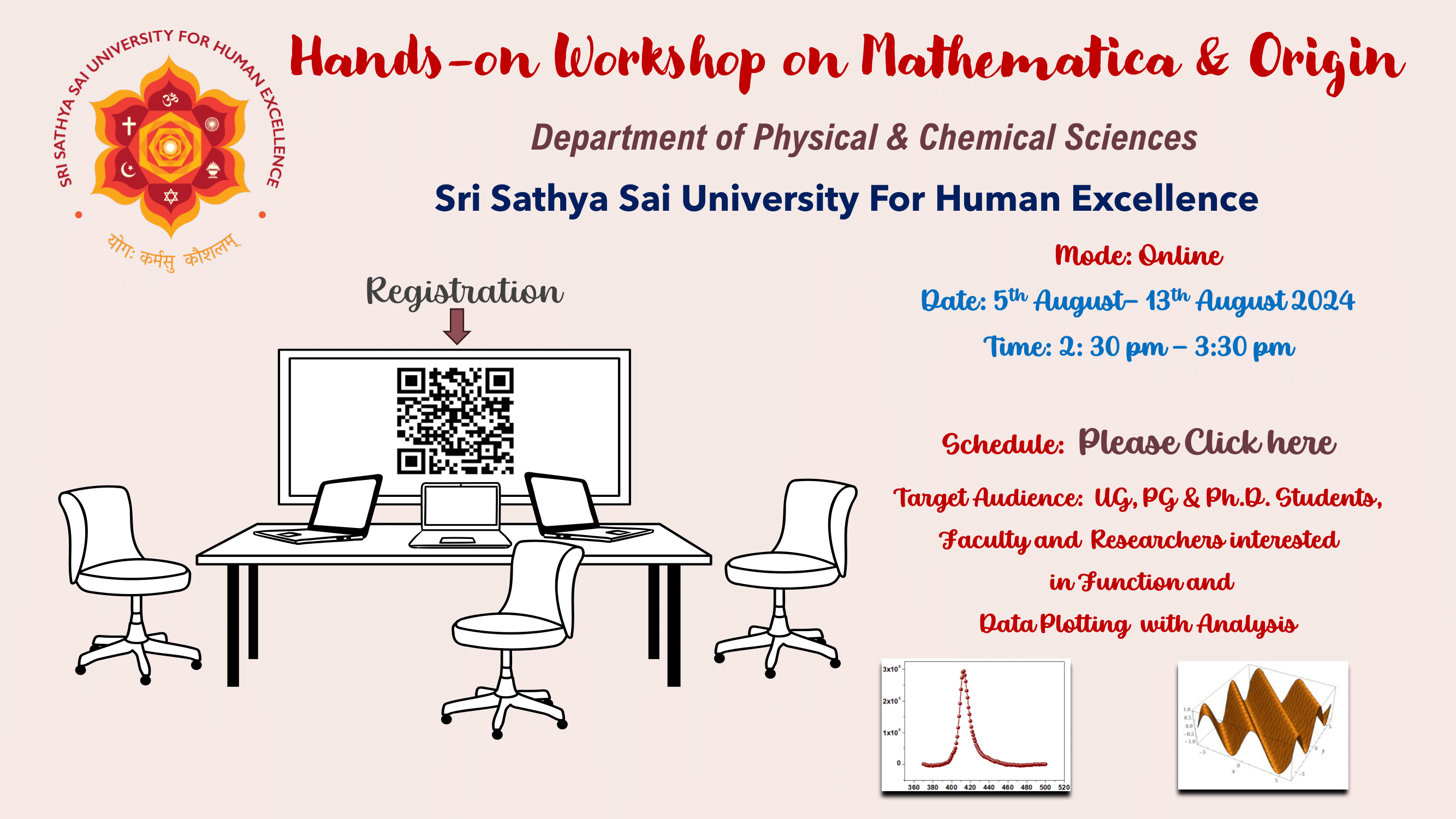 The Department of Physical and Chemical Sciences is organising a "Workshop on Mathematica and Origin Software" with hands-on experience in online mode. The workshop will take place on the following dates: 5th, 7th, 9th, 12th and 13th August 2024, from 2:30 PM to 3:30 PM.