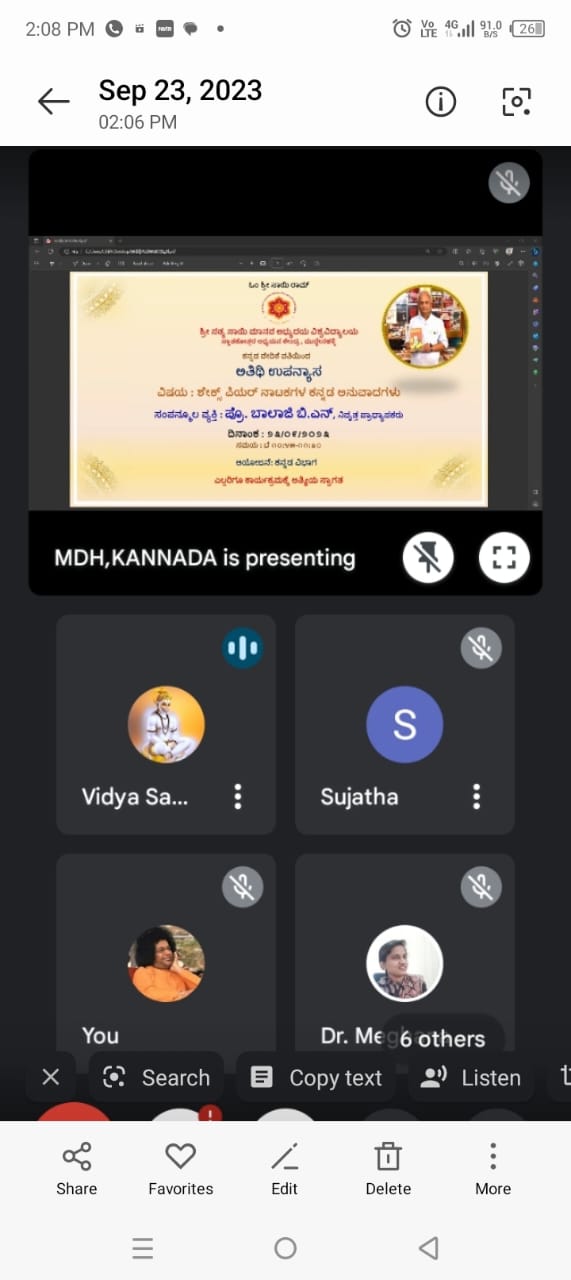 A guest lecture program was organized by the Kannada department on the topic of Kannada translation of Shakespeare's plays and why students should read Shakespeare.