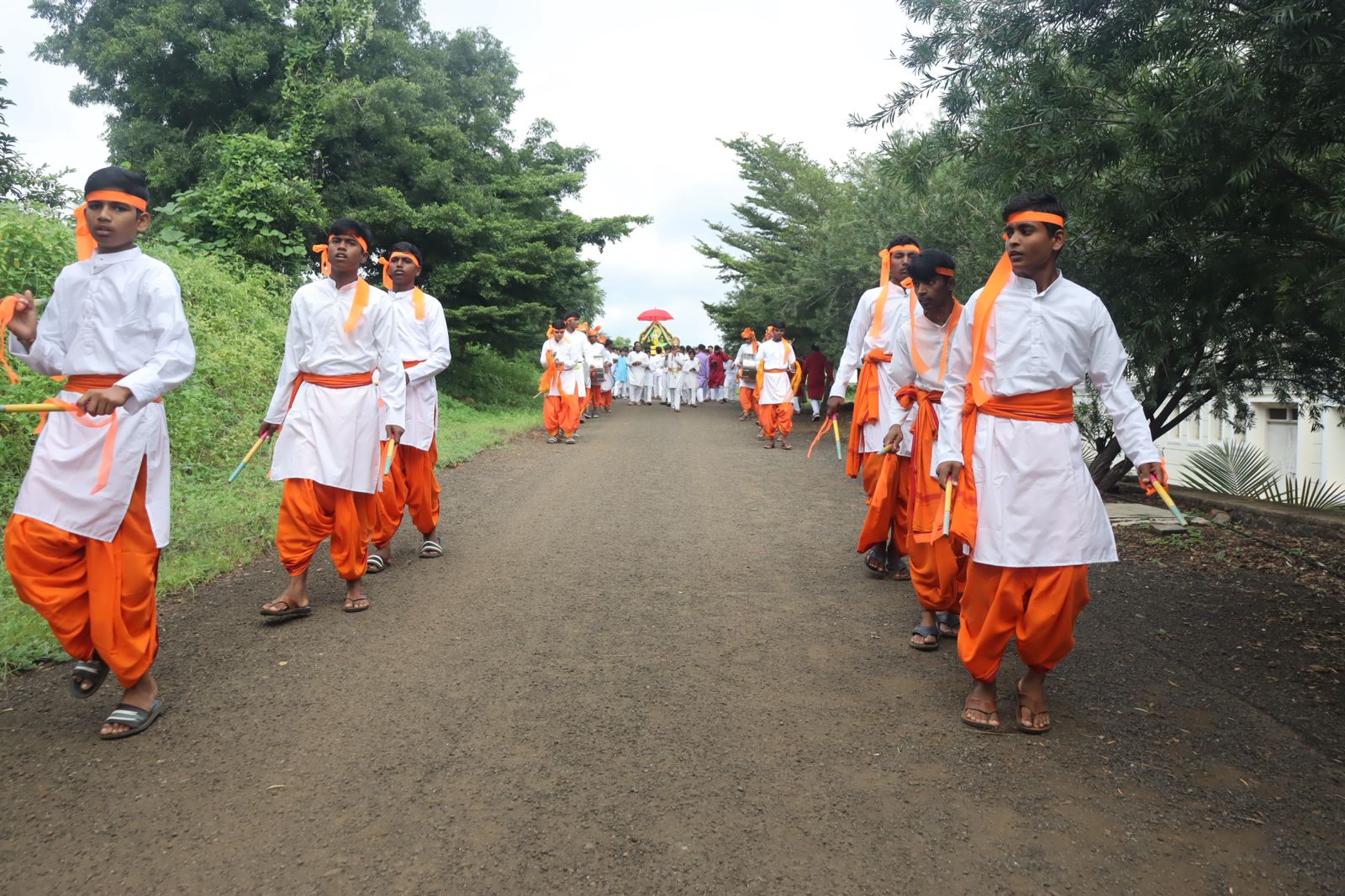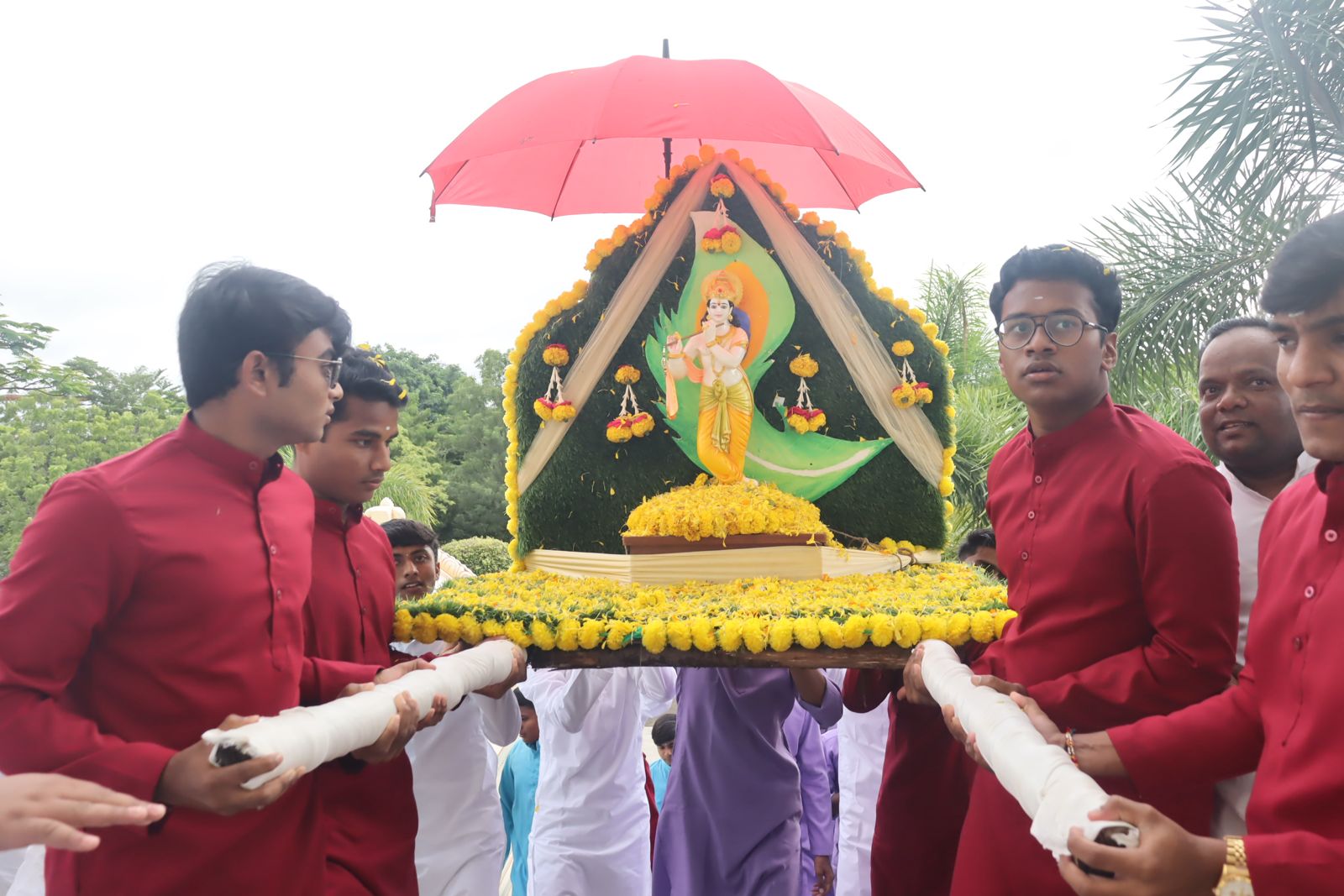 At 9:00 AM, a grand procession was held, where Lord Krishna was carried in a beautifully decorated Pallaki (palanquin), signifying the journey of the divine in the world. The Pallaki was accompanied by Kolata, a traditional folk dance, rhythmic drum beats, and spirited slogans, creating an atmosphere of celebration and devotion.