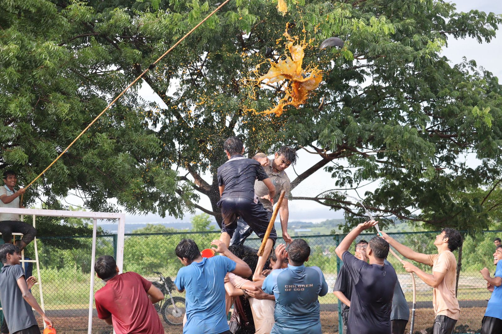 This ritual, combining multiple forms of devotional offerings, emphasised the significance of holistic worship, where music, dance, and prayer converge in the service of the divine. In the afternoon, the celebrations moved to the university grounds for the pot-breaking ceremony, symbolising the breaking of the bondage of the body and realising the True Self.