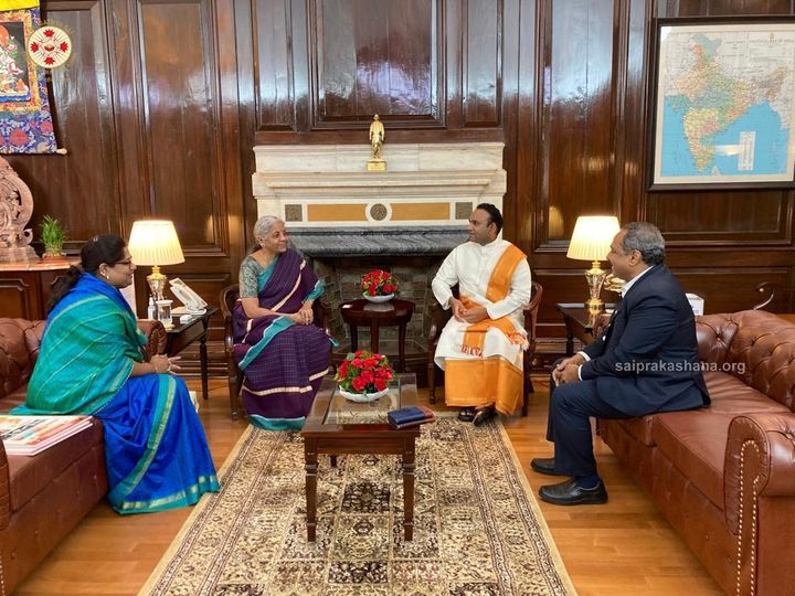 Sadguru Sri Madhusudan Sai met with Hon'ble Finance Minister Smt. Nirmala Sitharaman in Delhi, on 30 August 2023. The discussion revolved around recognizing and acknowledging unsung women working at the grassroots level across various sectors, women in higher education and women's empowerment, as well as bringing affordable healthcare to tier two towns and cities.