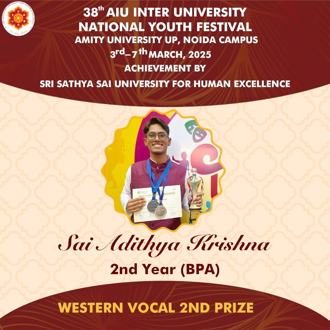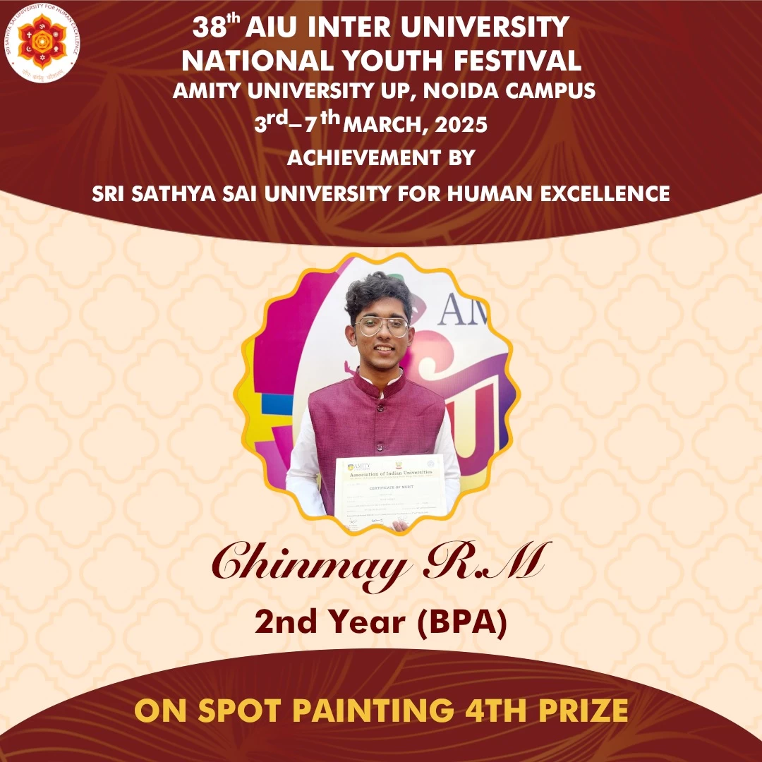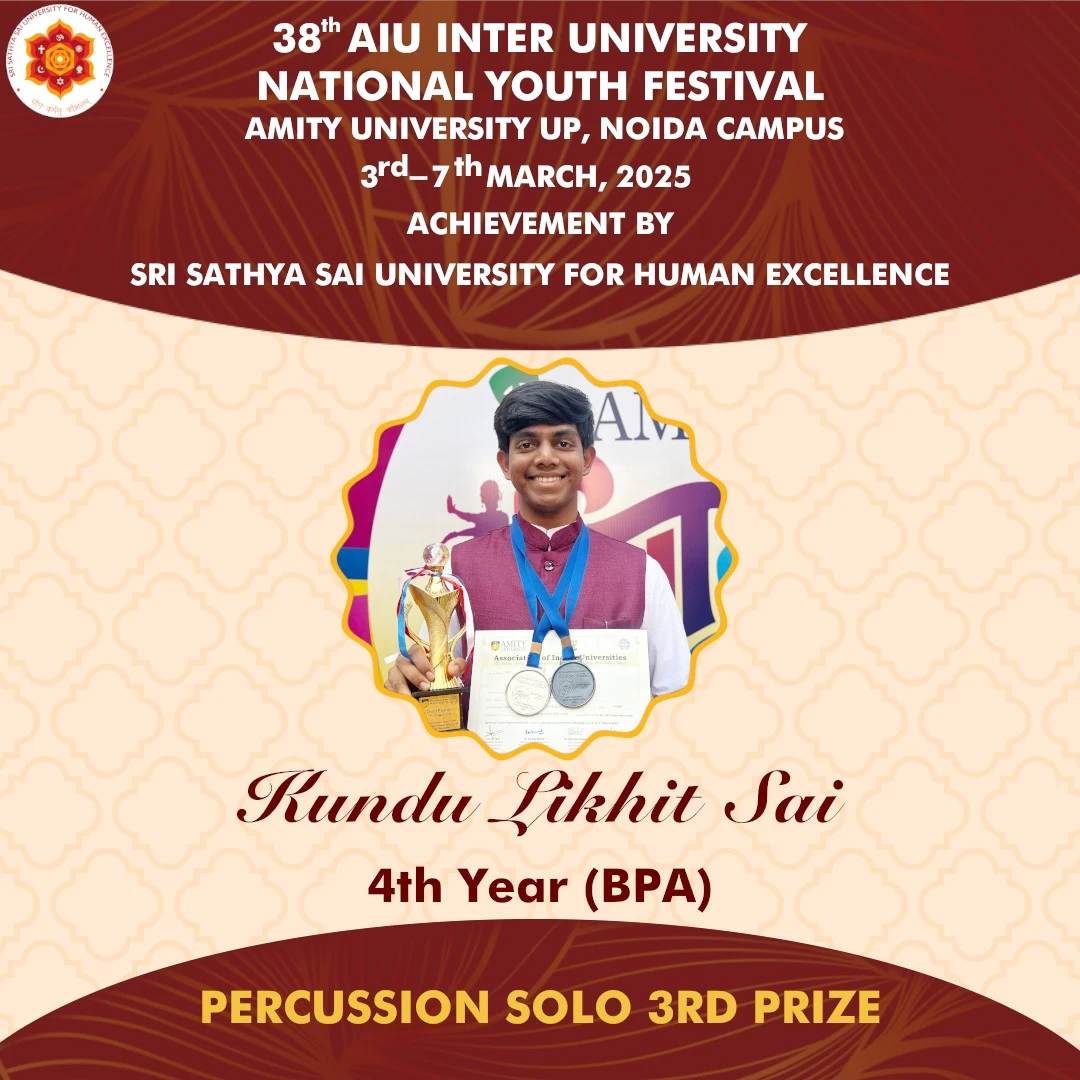 Sri Sathya Sai University for Human Excellence takes pride in its students’ outstanding achievements and extends heartfelt congratulations to all participants for their dedication and excellence.