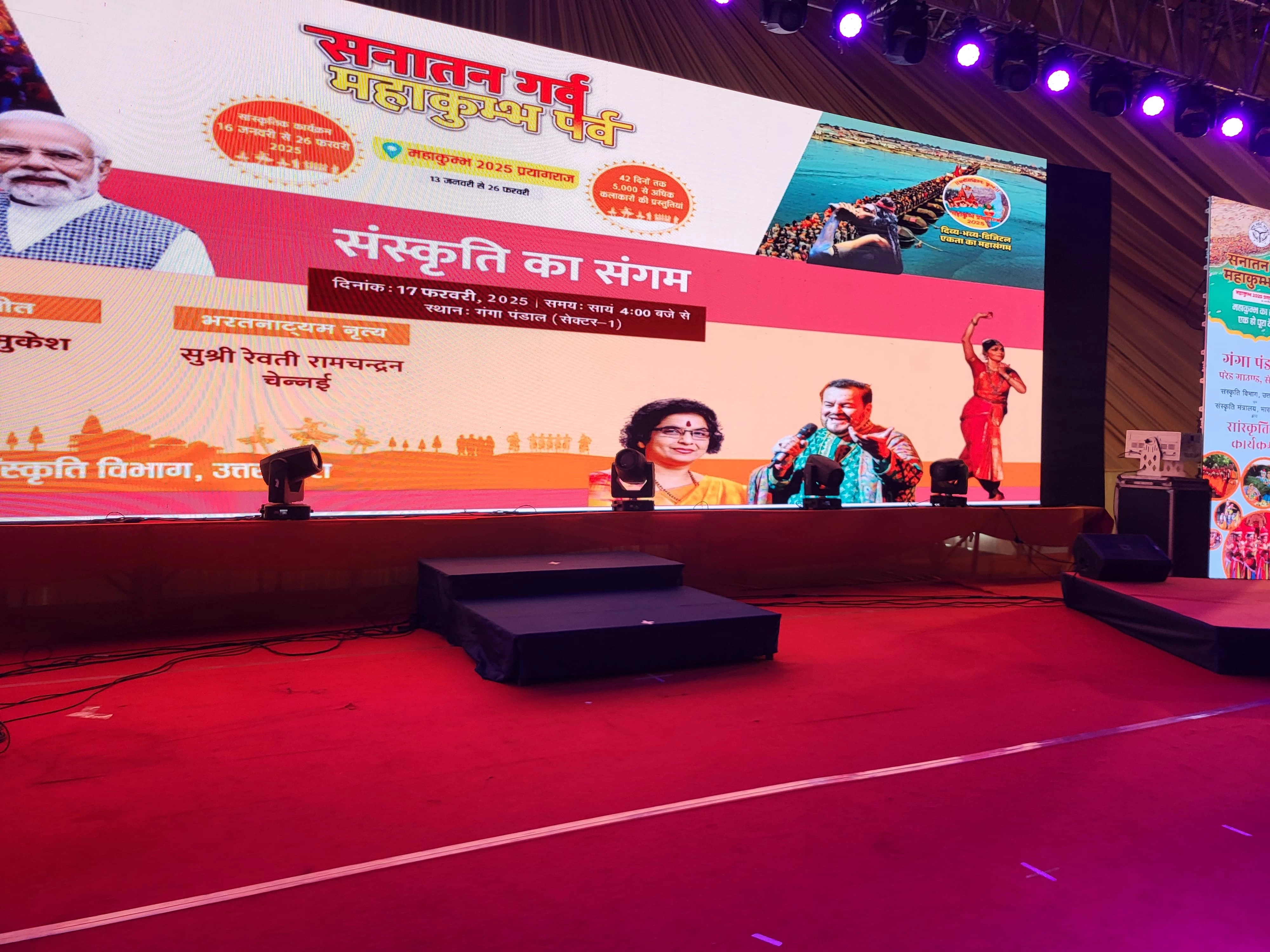 The event took place in Kalagram, Maha kumbhmela, Prayagraj, where the students arrived on the evening of February 16th. The program was titled as 'Om Namah Shivaaya'. Next day at 5:00 pm, students commenced the program, which offered them an enriching experience as they shared the stage with Revathi Ramachandran for the first time.