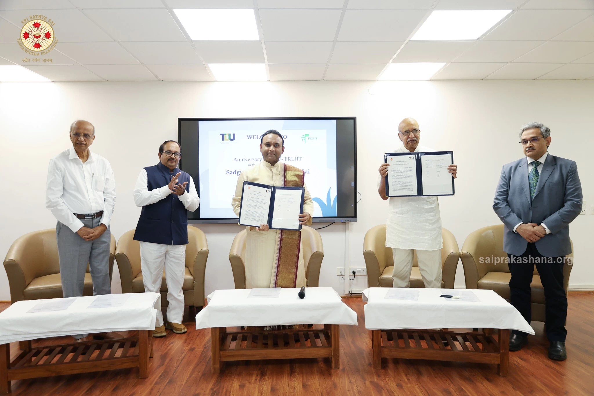 Sri Madhusudan Sai at the 31st Anniversary celebrations of the University of Trans-Disciplinary Health Sciences & Technology (TDU) in Bangalore, as the Chief Guest. TDU, a private university pioneering in transdisciplinary research and integrated medicine, exchanged a memorandum of understanding with the Sri Sathya Sai University for Human Excellence.