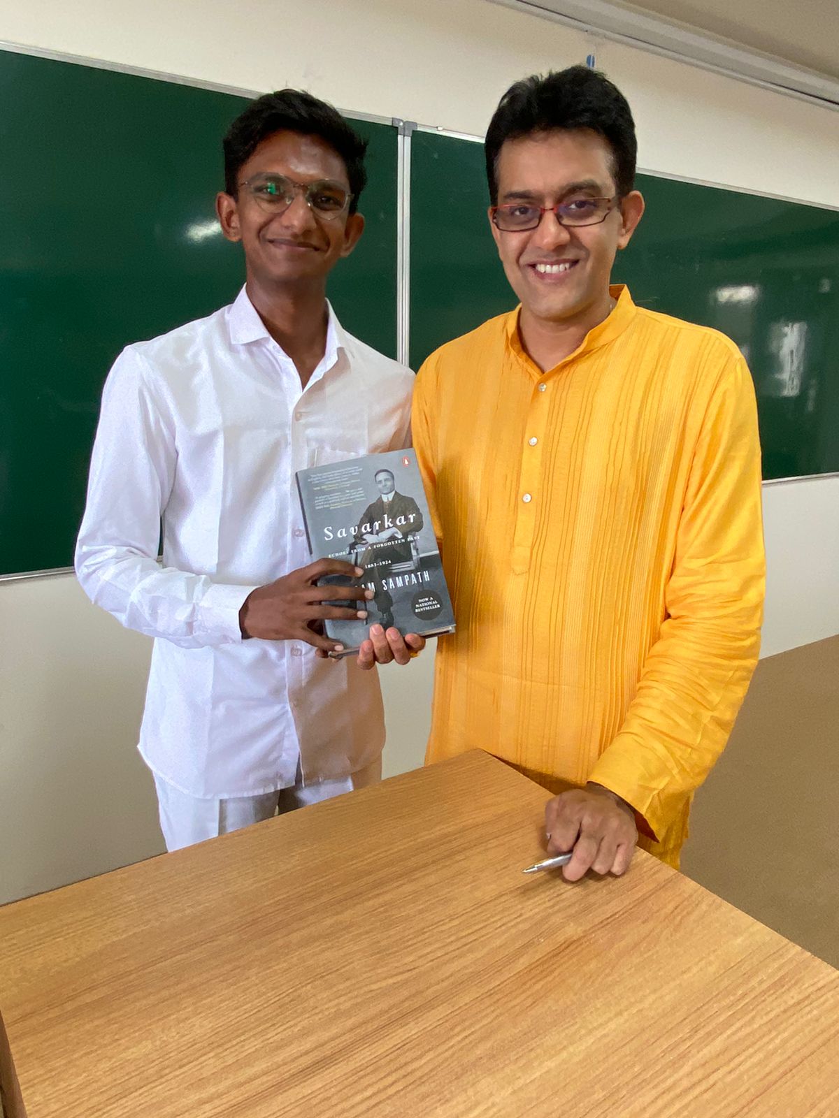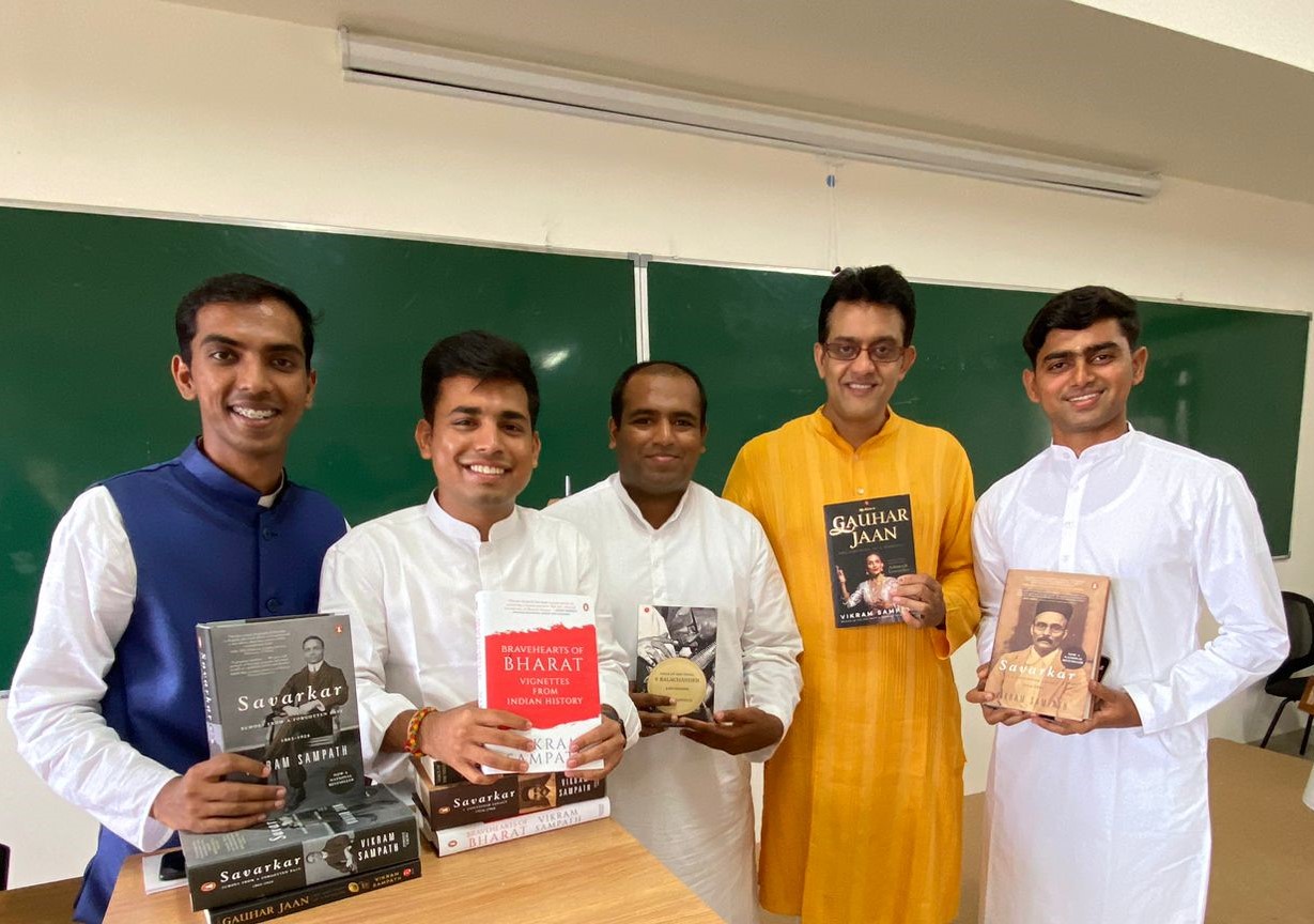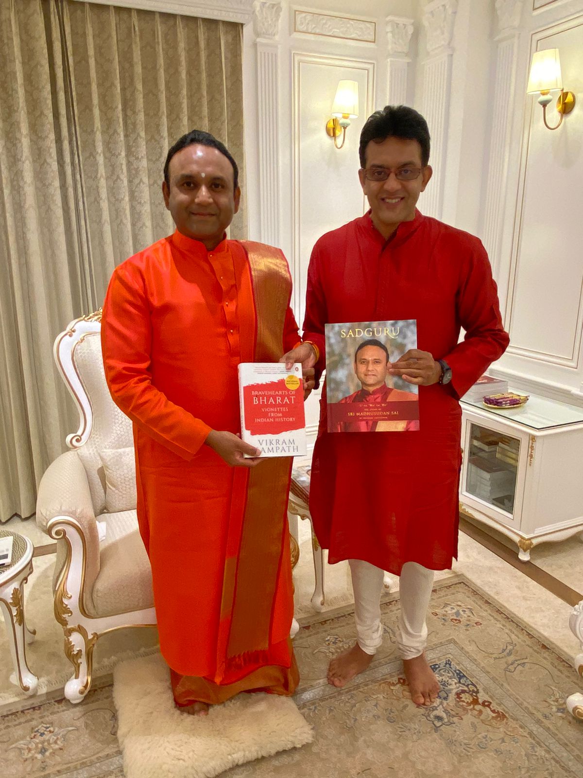 During his visit to Sathya Sai Grama, Dr. Vikram Sampath had the opportunity to meet Sadguru Sri Madhusudan Sai. They exchanged their works and thoughts with humility and love, reflecting their mutual respect.