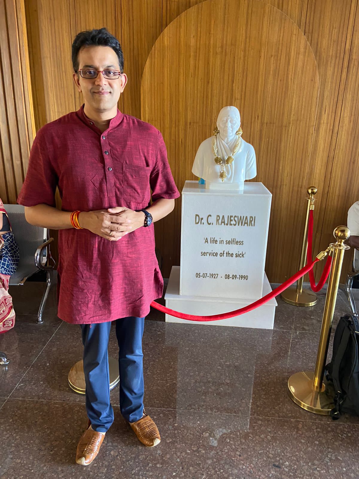 Thereafter, Dr. Sampath took a tour around the campus, where he had the pleasure of meeting young and energetic vatus of our Veda Gurkulam. He also visited the Goshala, Sarla Memorial Hospital, and the new edifice of the Medical College, which further enhanced his experience. Overall, Dr. Vikram's visit to Sathya Sai Grama was truly remarkable and memorable.