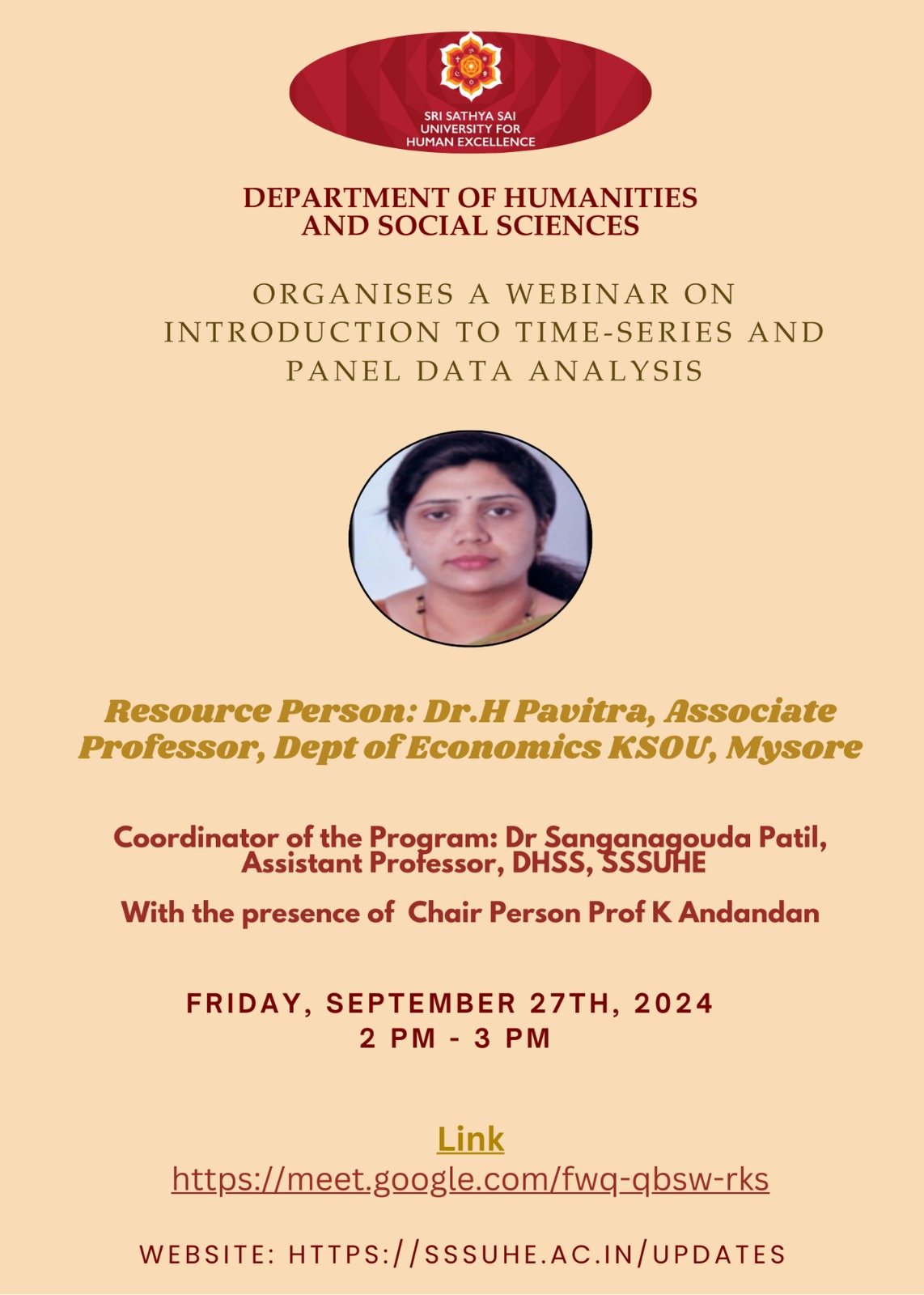 The Department of Humanities and Social Sciences, SSSUHE, is pleased to organise a webinar on: