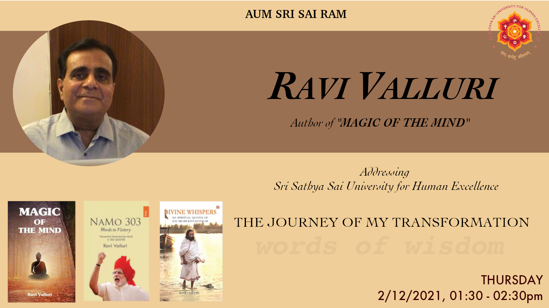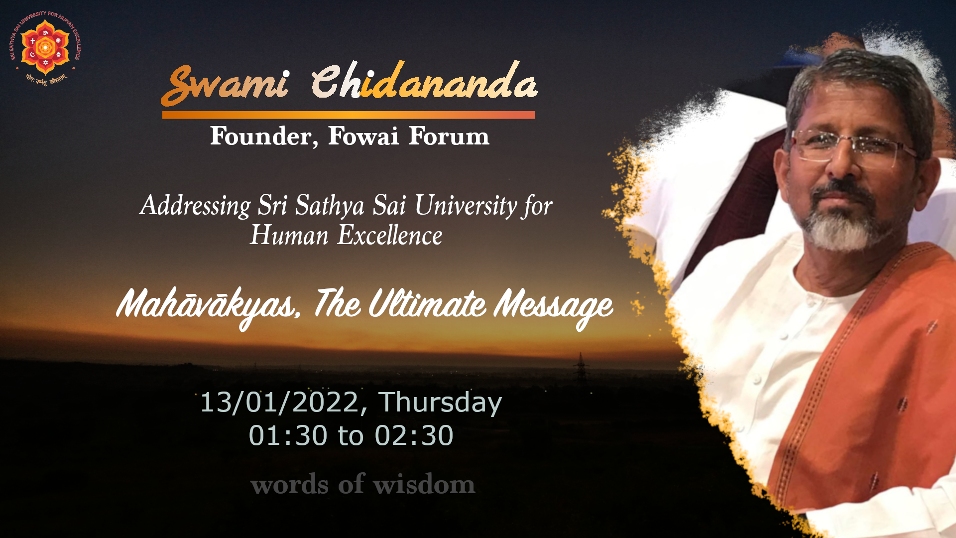 The Sri Sathya Sai University for Human Excellence, with its unique curriculum, includes a weekly Moral Class on Thursdays. This class is a portal for students to listen and interact with various experienced and exponential Authors, Organizing Heads, Saints, Philosophers and Prominent Personalities who are successful in their own genre of lives. It’s a program which allows students to get inspired, embrace and take steps towards his/her passion. This is a program with the sole purpose of making the students of the university understand different thoughts and ideas of life by exposing them to the Good Great minds. It is this platform that has given the students an opportunity to listen to the spiritual teachings of the philosophers, the ideas of the author, and lessons from the administrators and to understand life from the saints and assimilate them in their own life. This initiative taken up by the university has helped many students in different ways and is also going to inspire and help many more in the coming times.