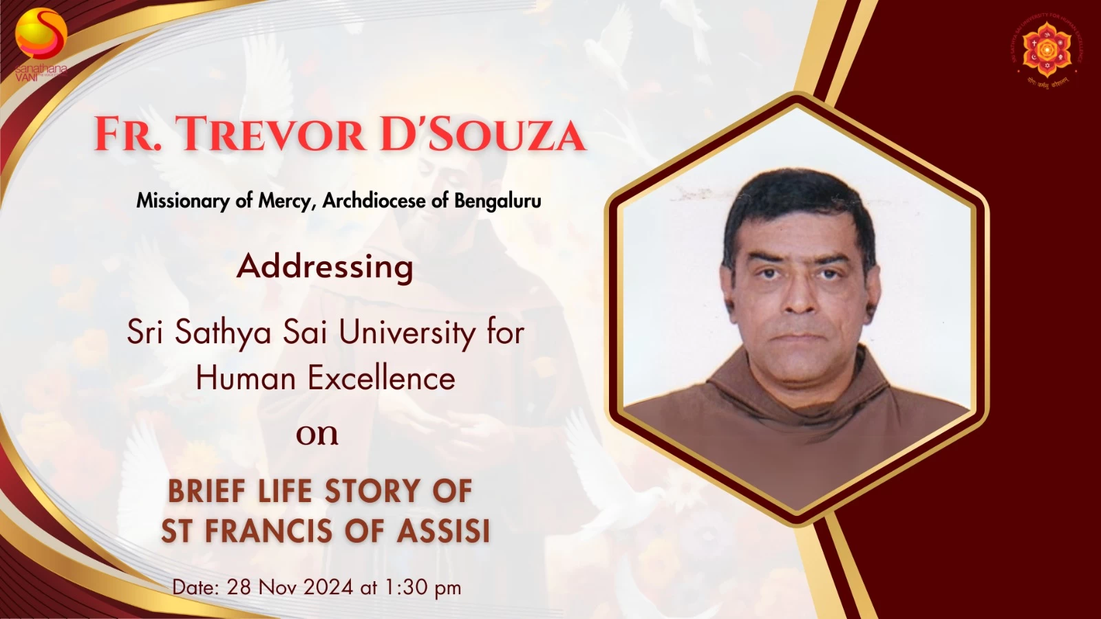 Fr. Trevor D'Souza is a multifaceted individual - a Franciscan priest, a chartered accountant, and a Missionary of Mercy appointed by Pope Francis. Born in India, he is based in Bengaluru, Karnataka.